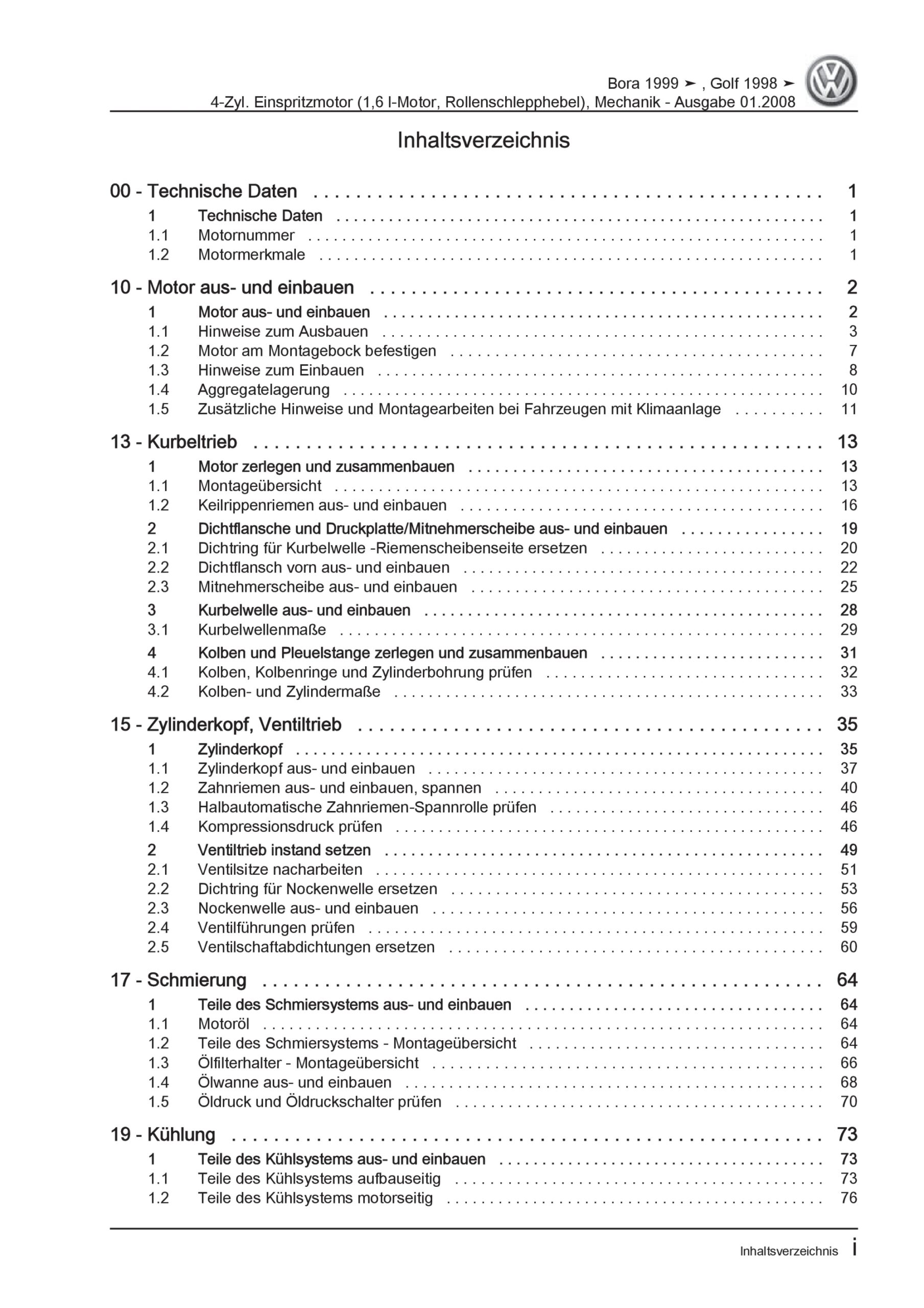 Diese Reparaturanleitung enthält detaillierte Beschreibungen zu Aus- und Einbauarbeiten, Einstell- und Prüfarbeiten sowie zahlreiche Grafiken, Bilder und Explosionszeichnungen. Die Kunststoffringbindung ermöglicht ein problemloses Umschlagen bis zu 180°.