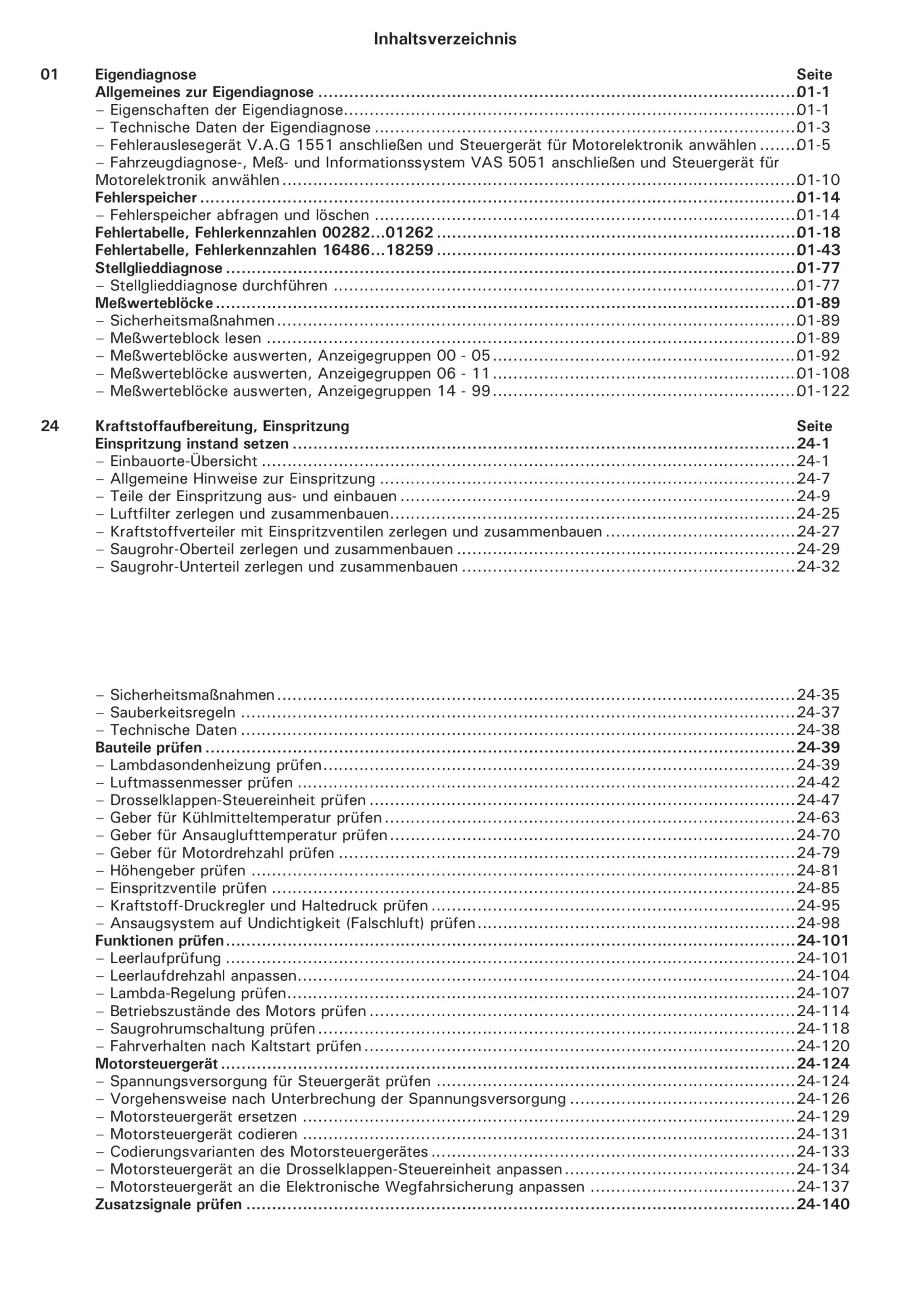 Diese Reparaturanleitung enthält detaillierte Beschreibungen zu Aus- und Einbauarbeiten, Einstell- und Prüfarbeiten sowie zahlreiche Grafiken, Bilder und Explosionszeichnungen. Die Kunststoffringbindung ermöglicht ein problemloses Umschlagen bis zu 180°.