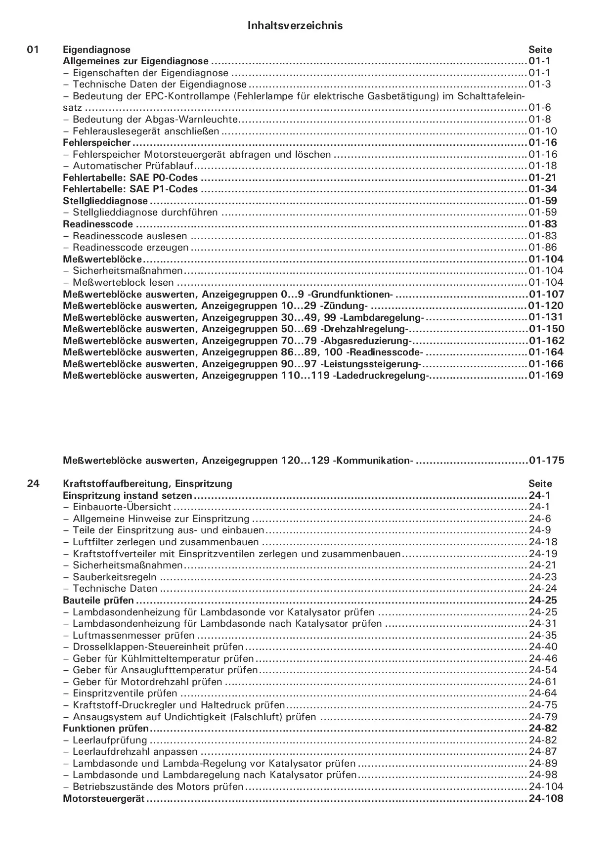 Diese Reparaturanleitung enthält detaillierte Beschreibungen zu Aus- und Einbauarbeiten, Einstell- und Prüfarbeiten sowie zahlreiche Grafiken, Bilder und Explosionszeichnungen. Die Kunststoffringbindung ermöglicht ein problemloses Umschlagen bis zu 180°.