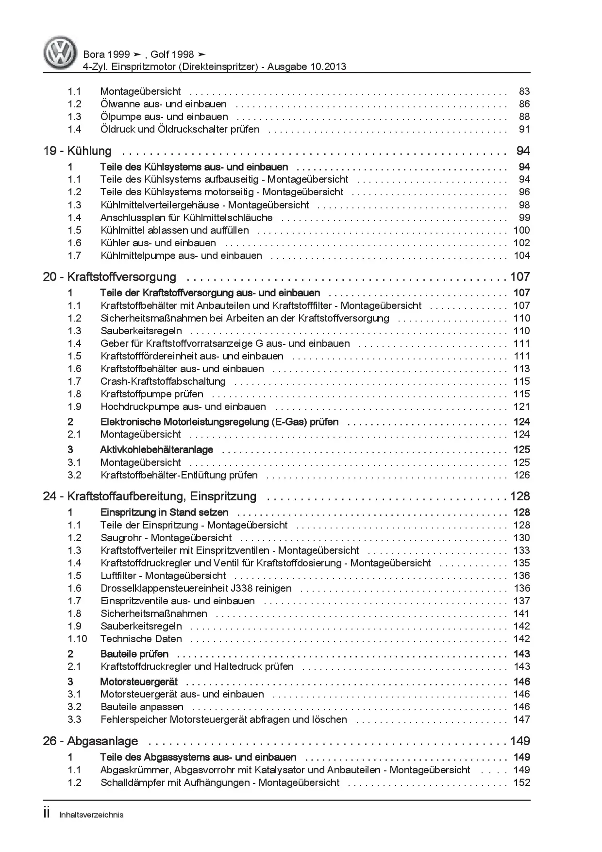 Diese Reparaturanleitung enthält detaillierte Beschreibungen zu Aus- und Einbauarbeiten, Einstell- und Prüfarbeiten sowie zahlreiche Grafiken, Bilder und Explosionszeichnungen. Die Kunststoffringbindung ermöglicht ein problemloses Umschlagen bis zu 180°.