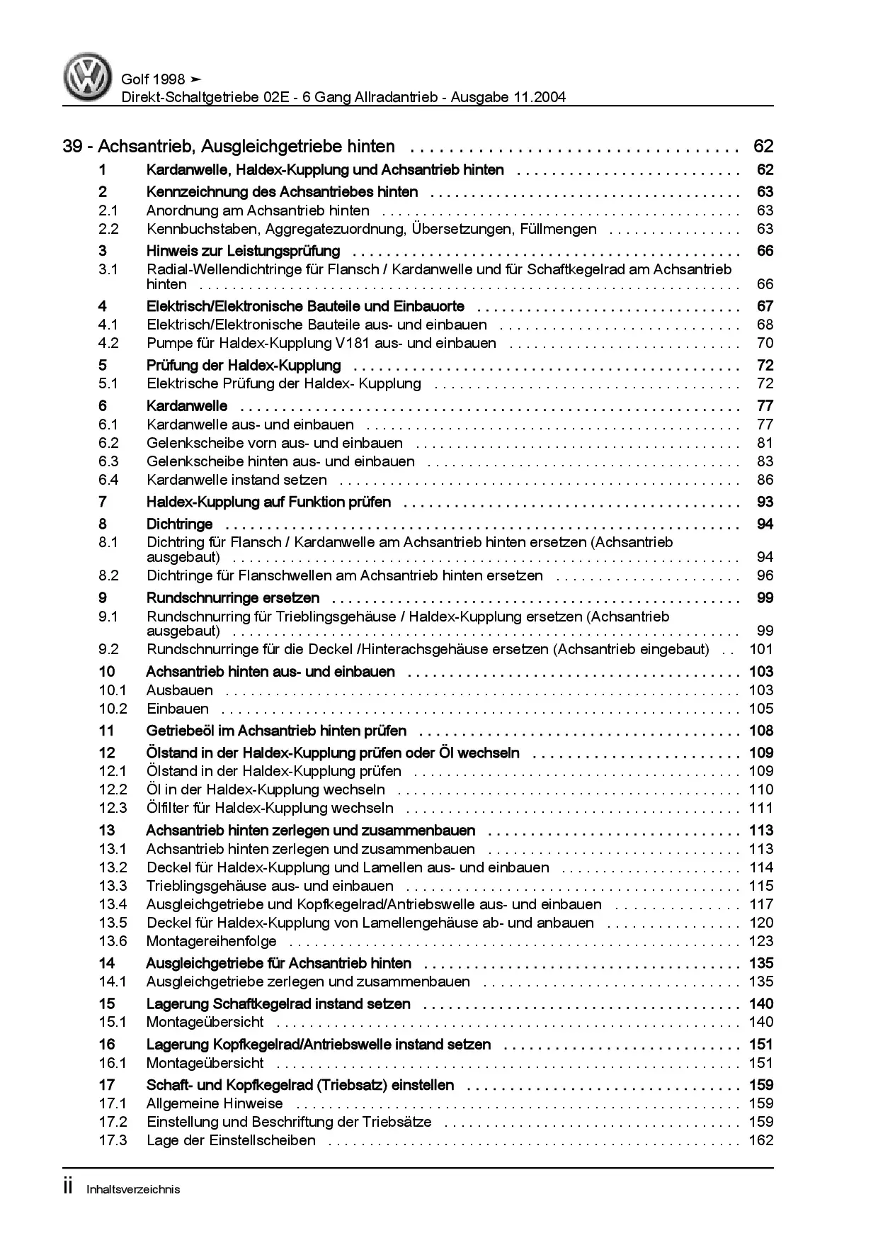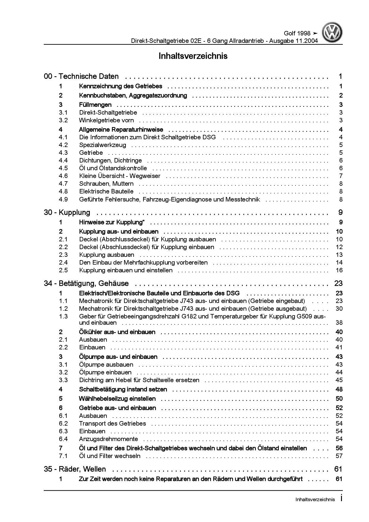 Diese Reparaturanleitung enthält detaillierte Beschreibungen zu Aus- und Einbauarbeiten, Einstell- und Prüfarbeiten sowie zahlreiche Grafiken, Bilder und Explosionszeichnungen. Die Kunststoffringbindung ermöglicht ein problemloses Umschlagen bis zu 180°.