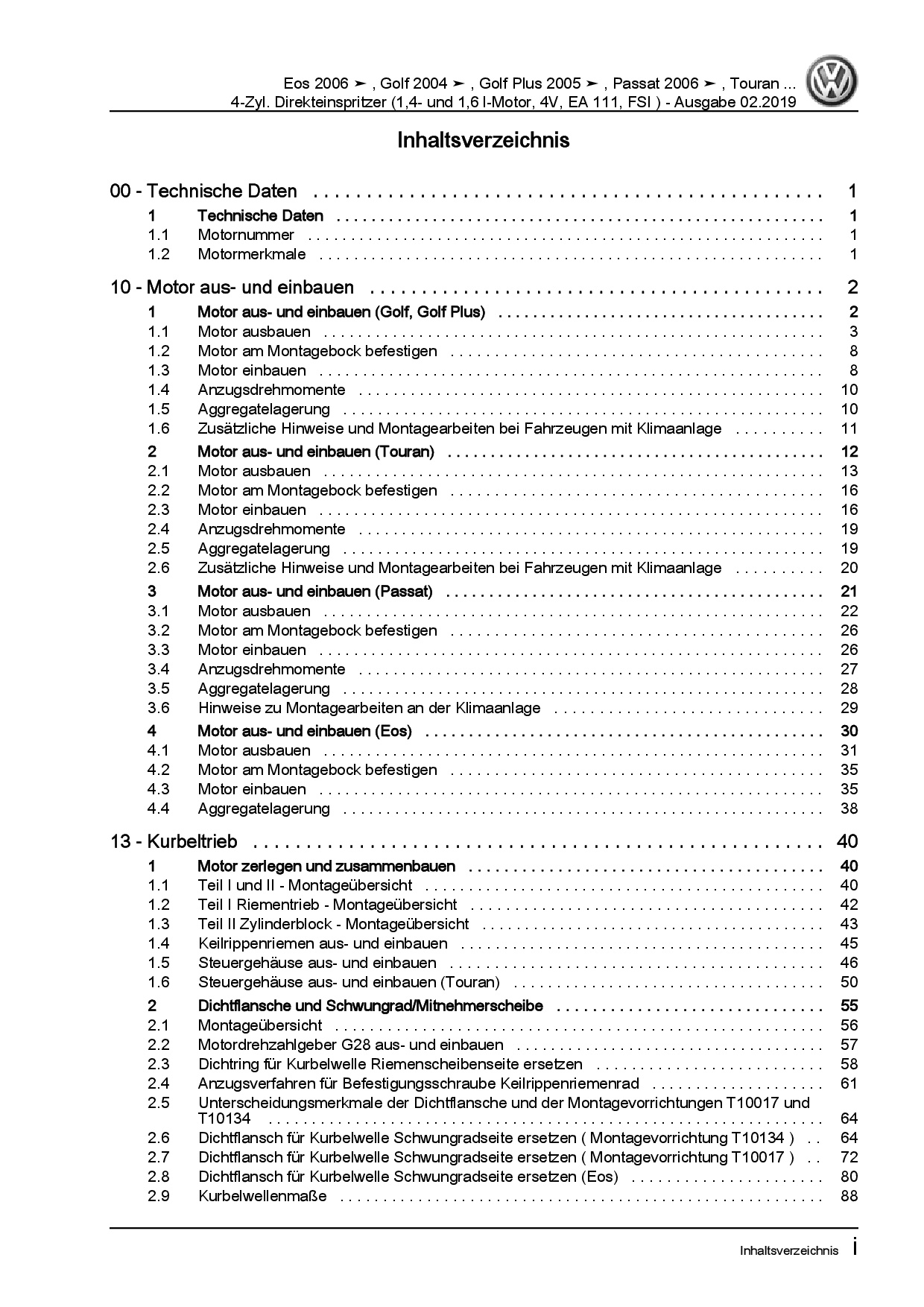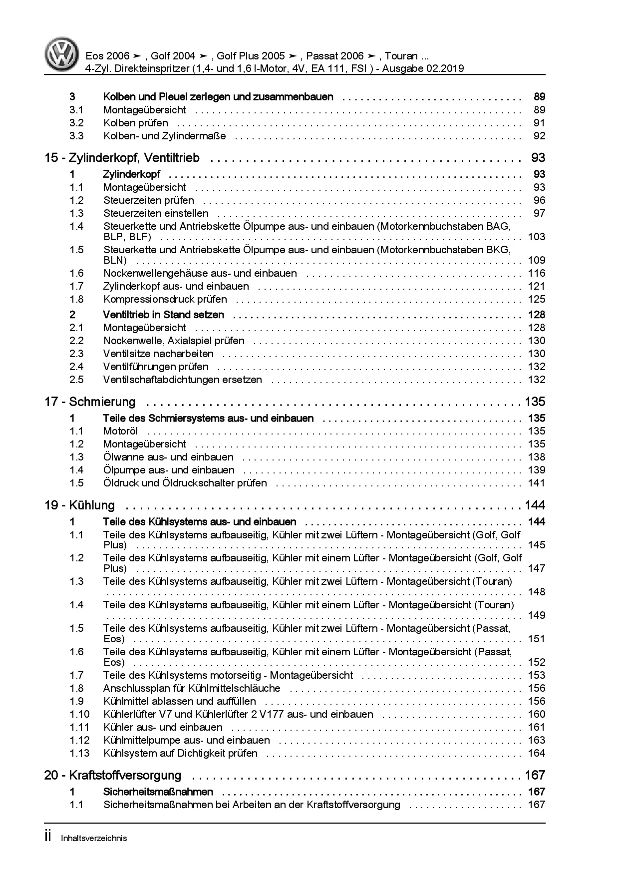 VW Golf 5 1K (03-08) 4-Zyl. 1,4l 1,6l Benzinmotor 90-115 PS Reparaturanleitung