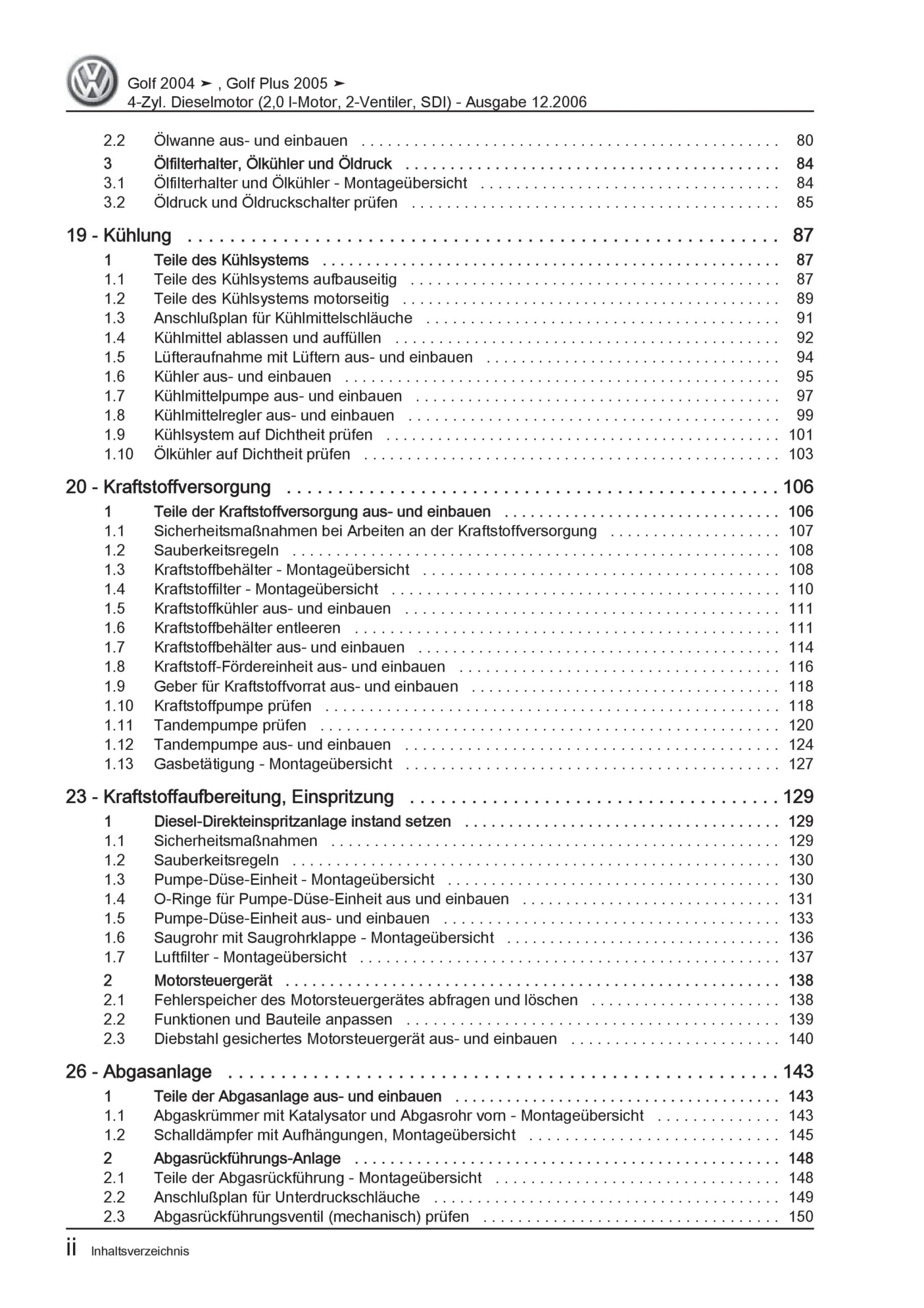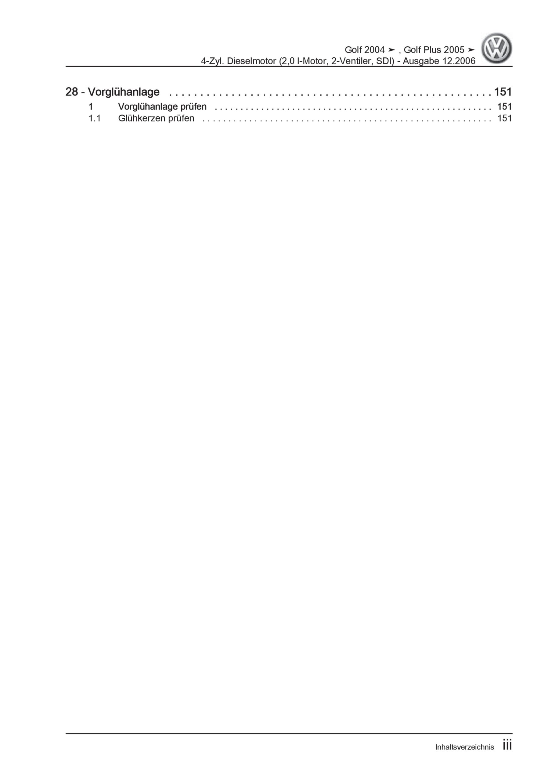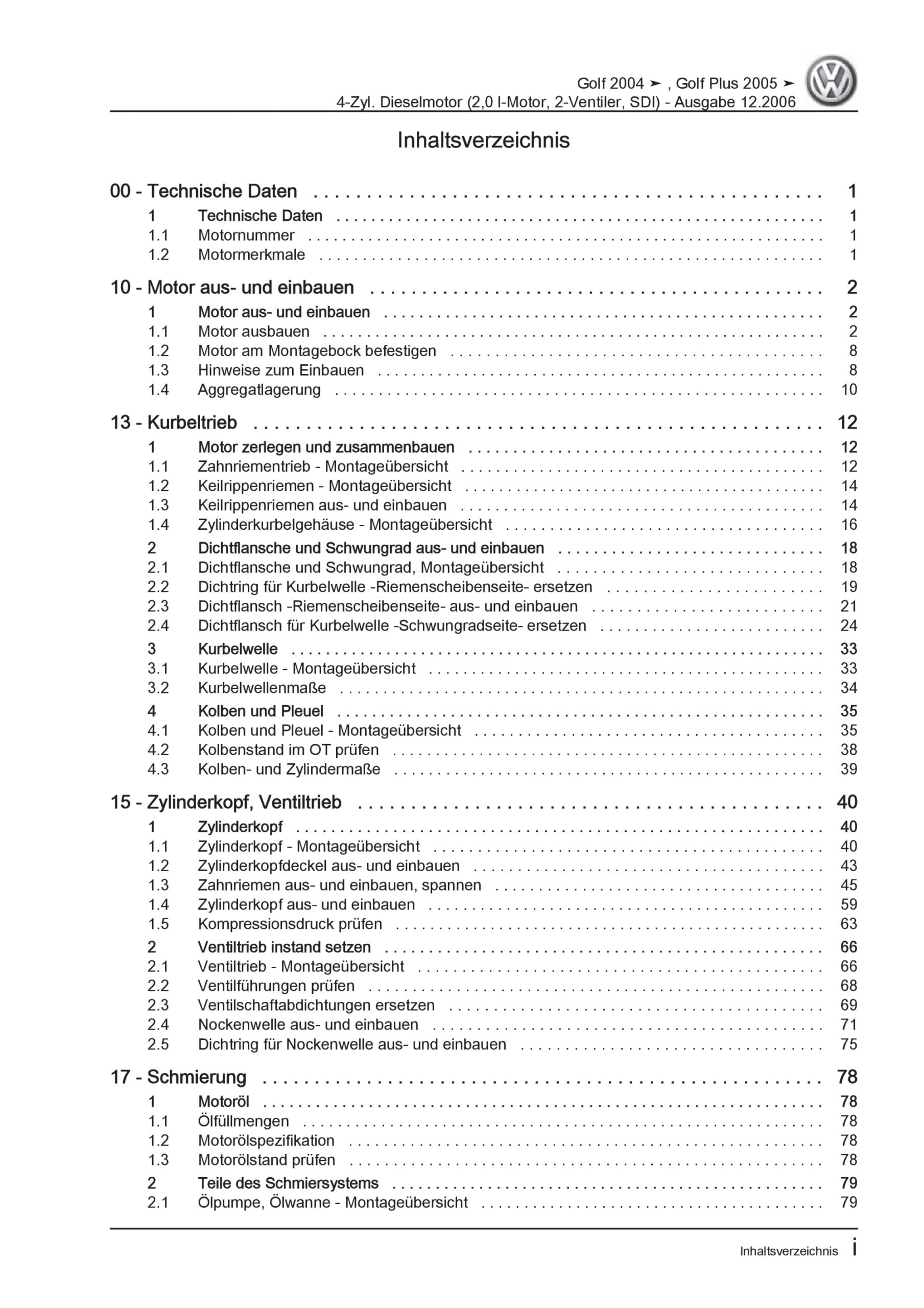VW Golf 5 Plus 5M 2003-2008 4-Zyl. 2,0l Dieselmotor SDI 75 PS Reparaturanleitung