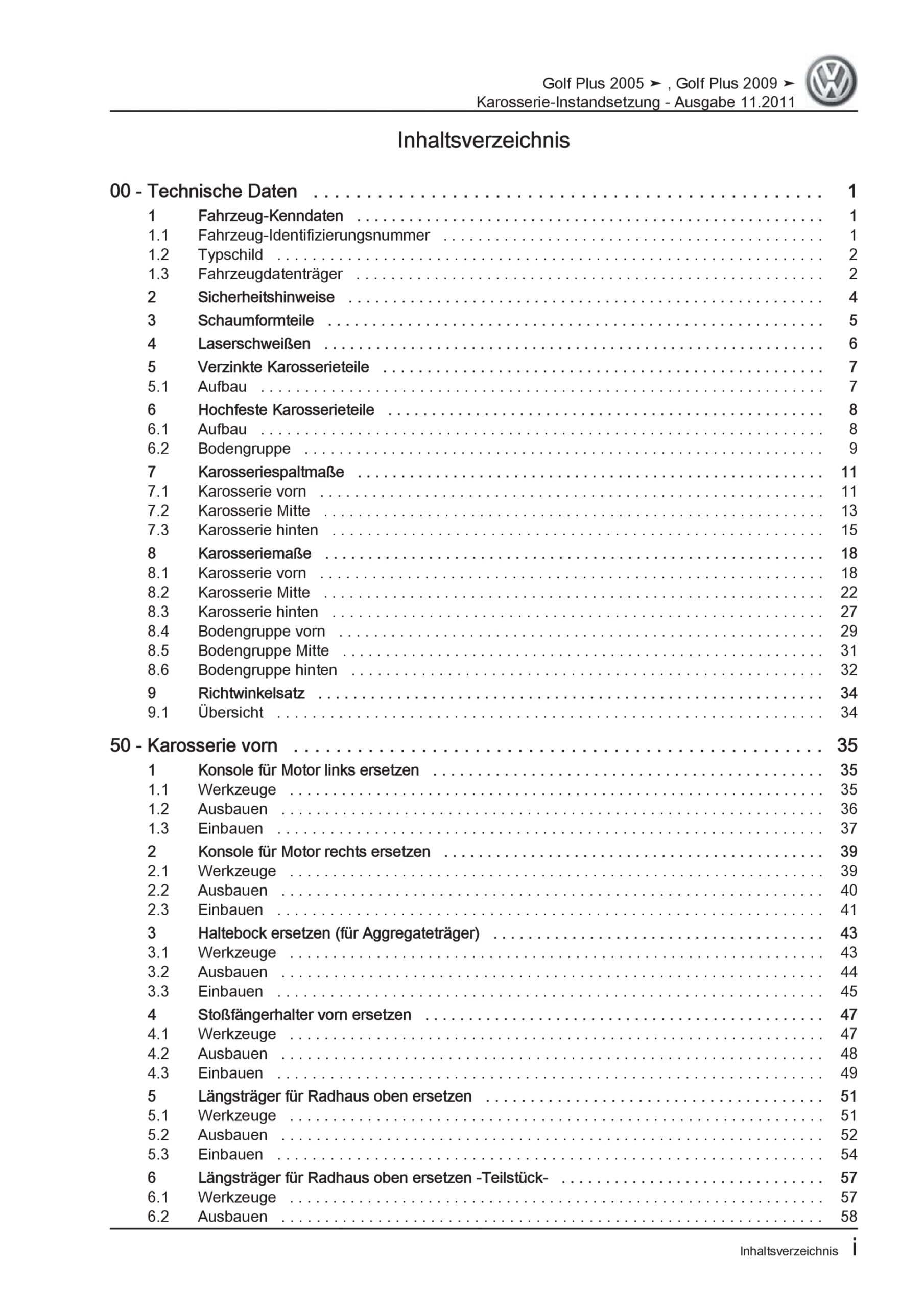Offizieller VW Golf 5 Plus Reparaturleitfaden