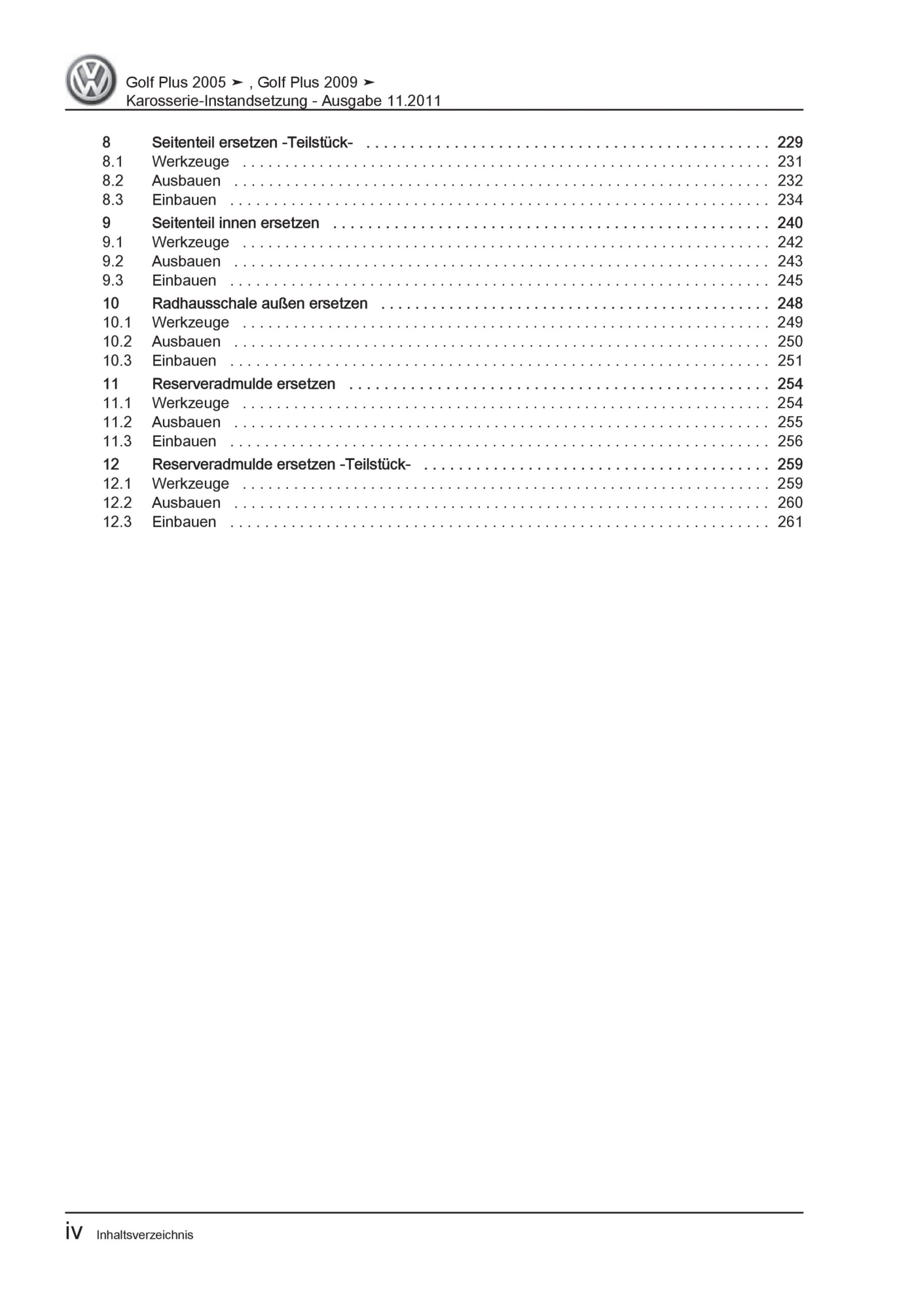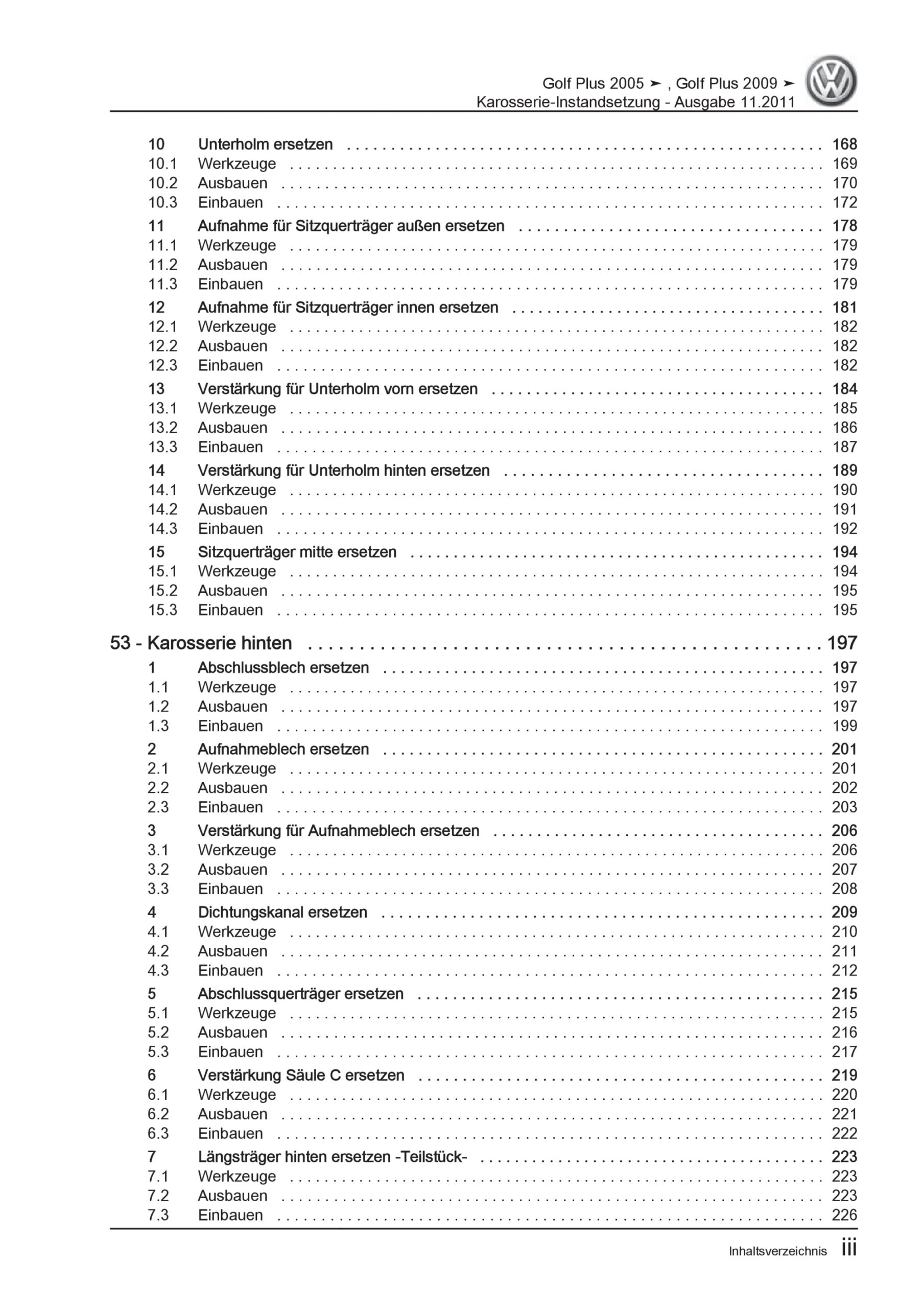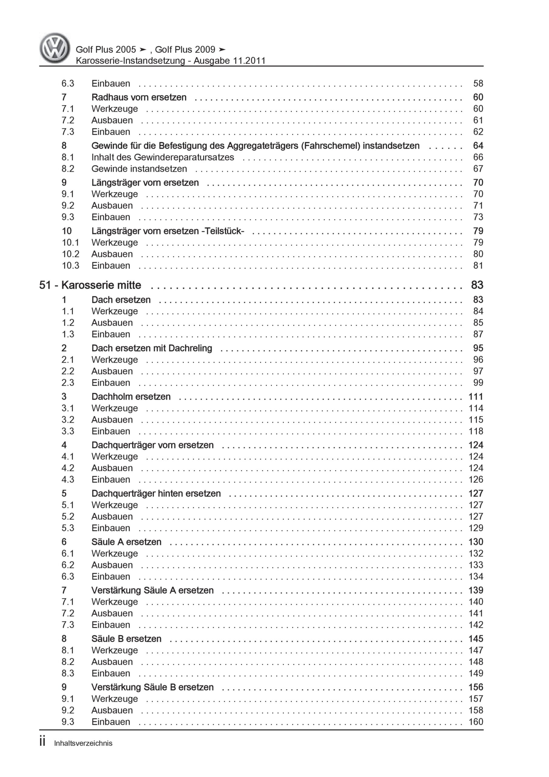 VW Golf 5 Plus 5M 2003-2008 Karosserie Unfall Instandsetzung Reparaturanleitung