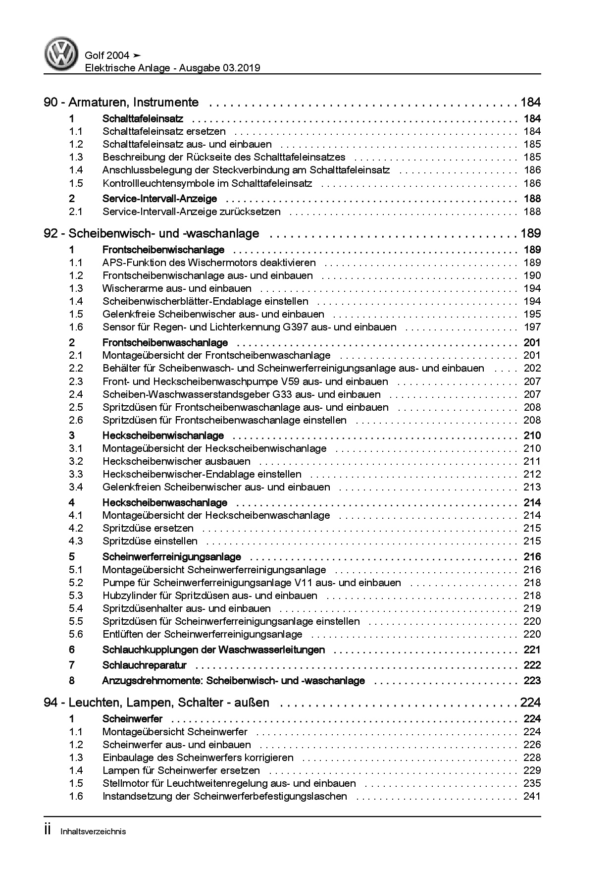 Diese Reparaturanleitung enthält detaillierte Beschreibungen zu Aus- und Einbauarbeiten, Einstell- und Prüfarbeiten sowie zahlreiche Grafiken, Bilder und Explosionszeichnungen. Die Kunststoffringbindung ermöglicht ein problemloses Umschlagen bis zu 180°.