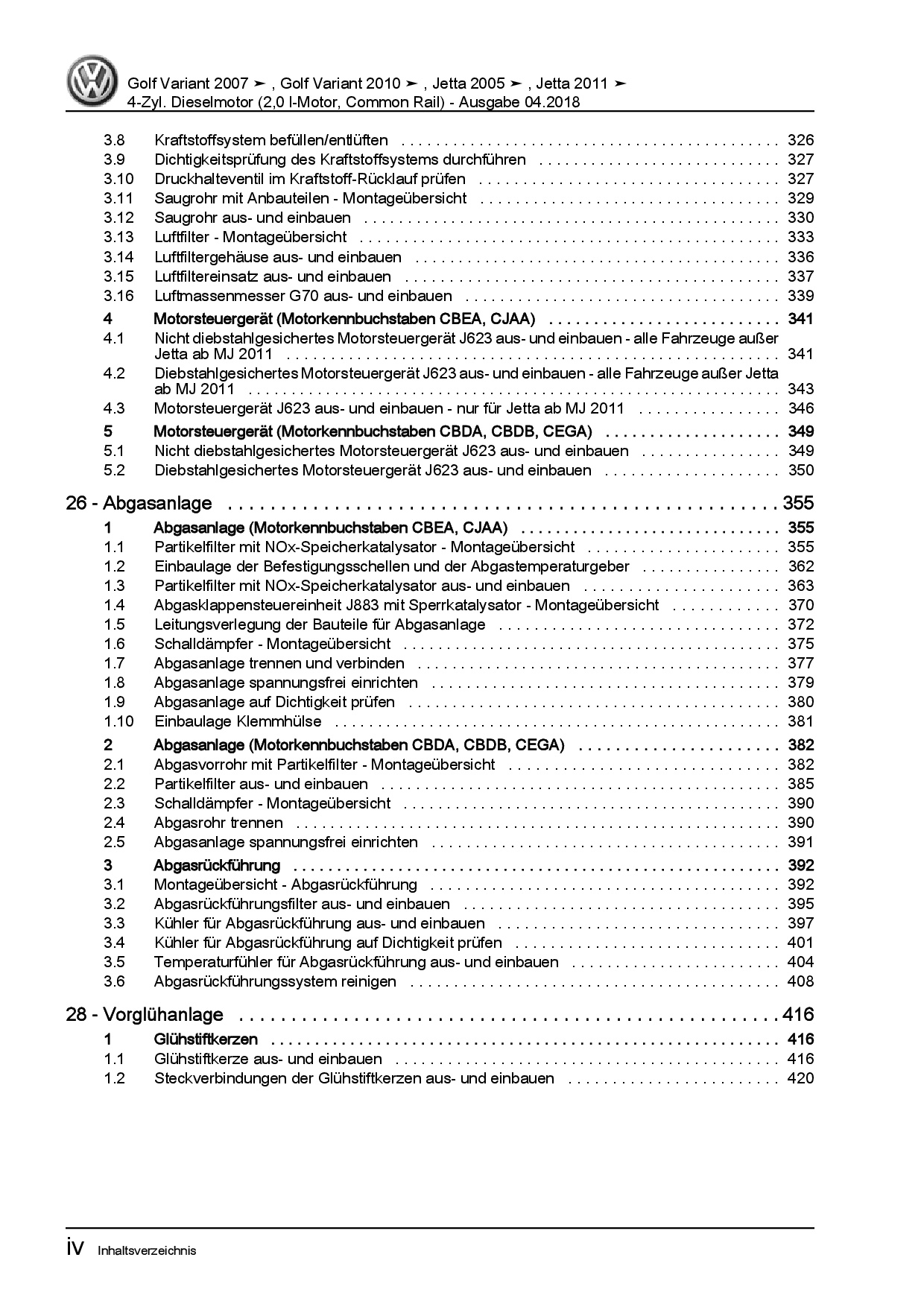 VW Golf 5 Variant (07-09) 4-Zyl. 2,0l 136-170 PS Dieselmotor Reparaturanleitung