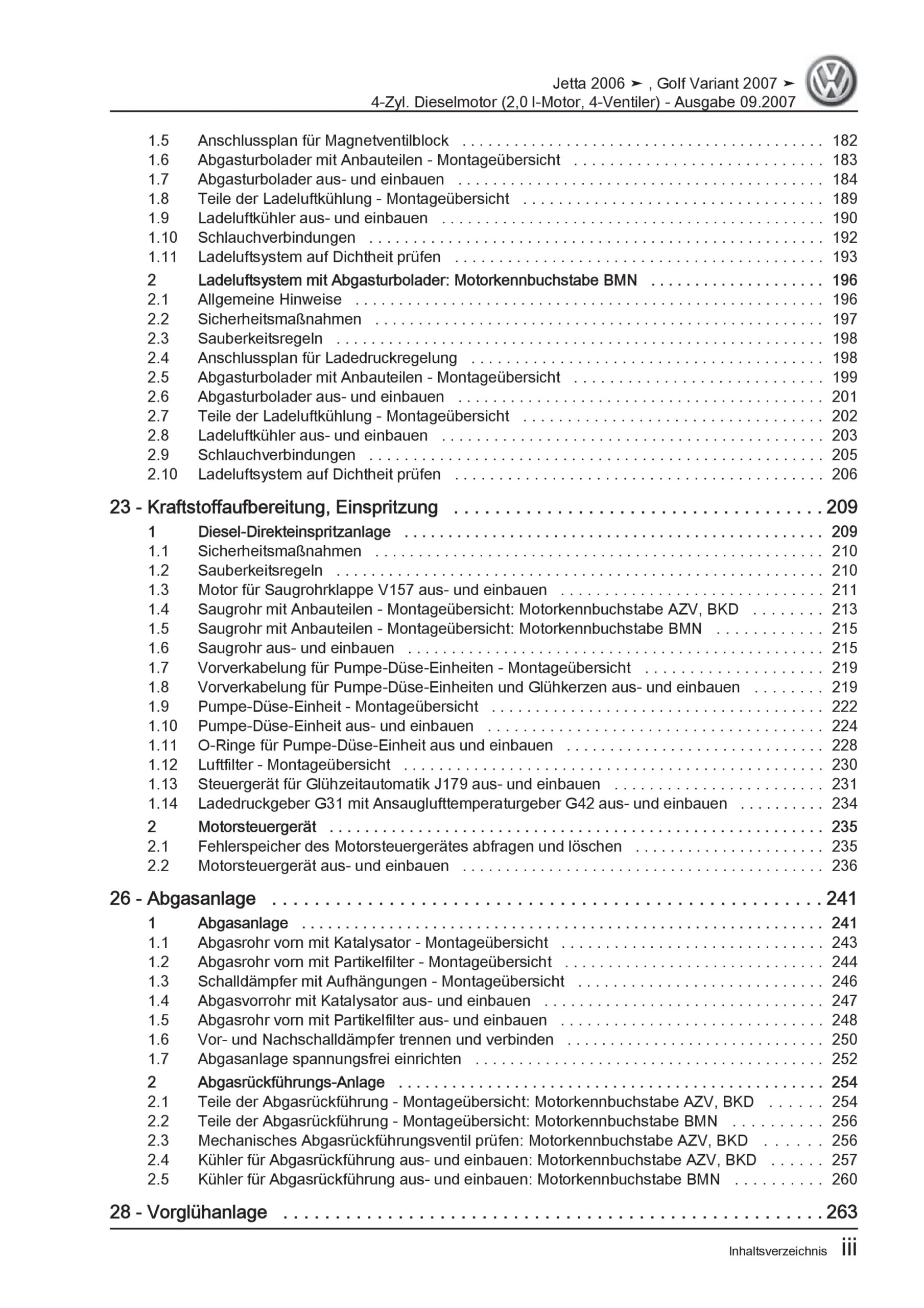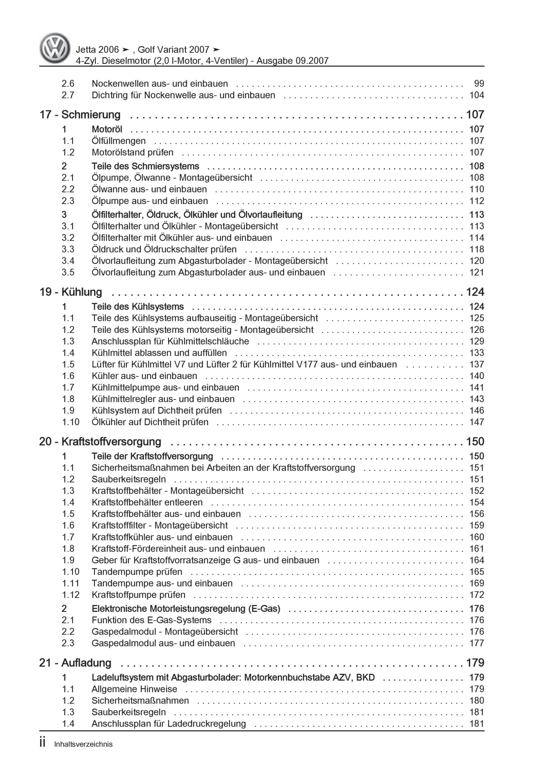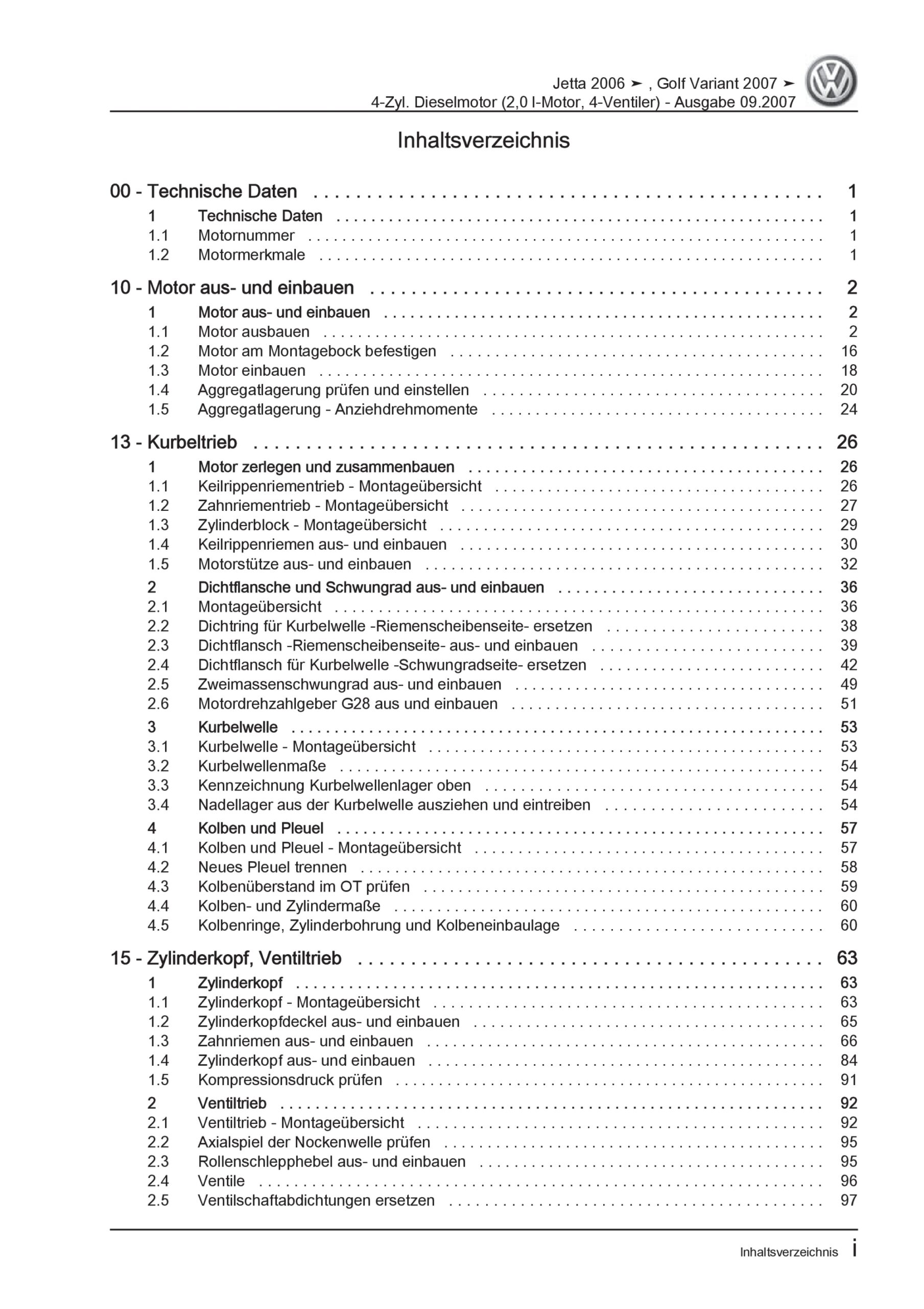 VW Golf 5 Variant (07-09) 4-Zyl. 2,0l Dieselmotor 136-170 PS Reparaturanleitung