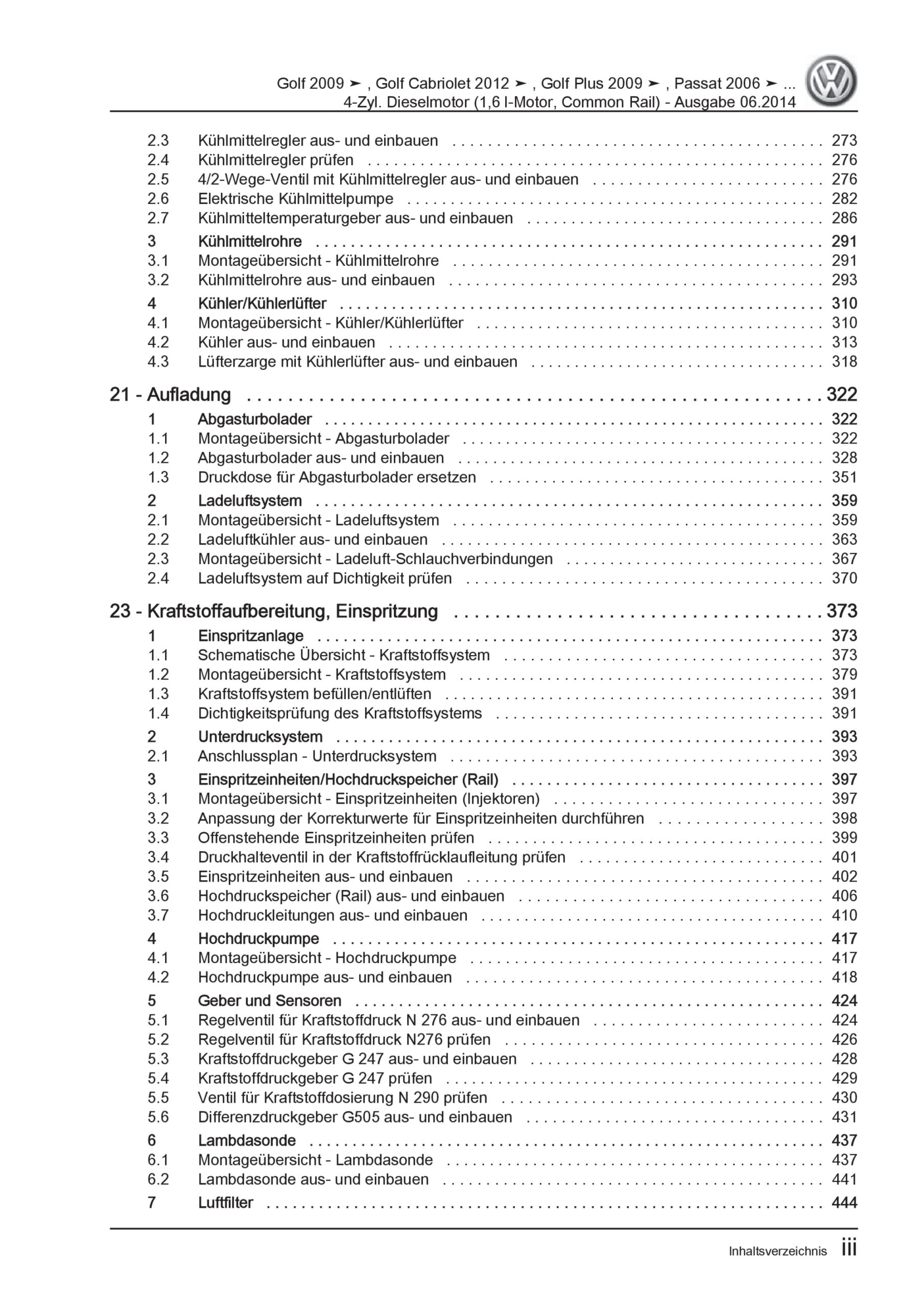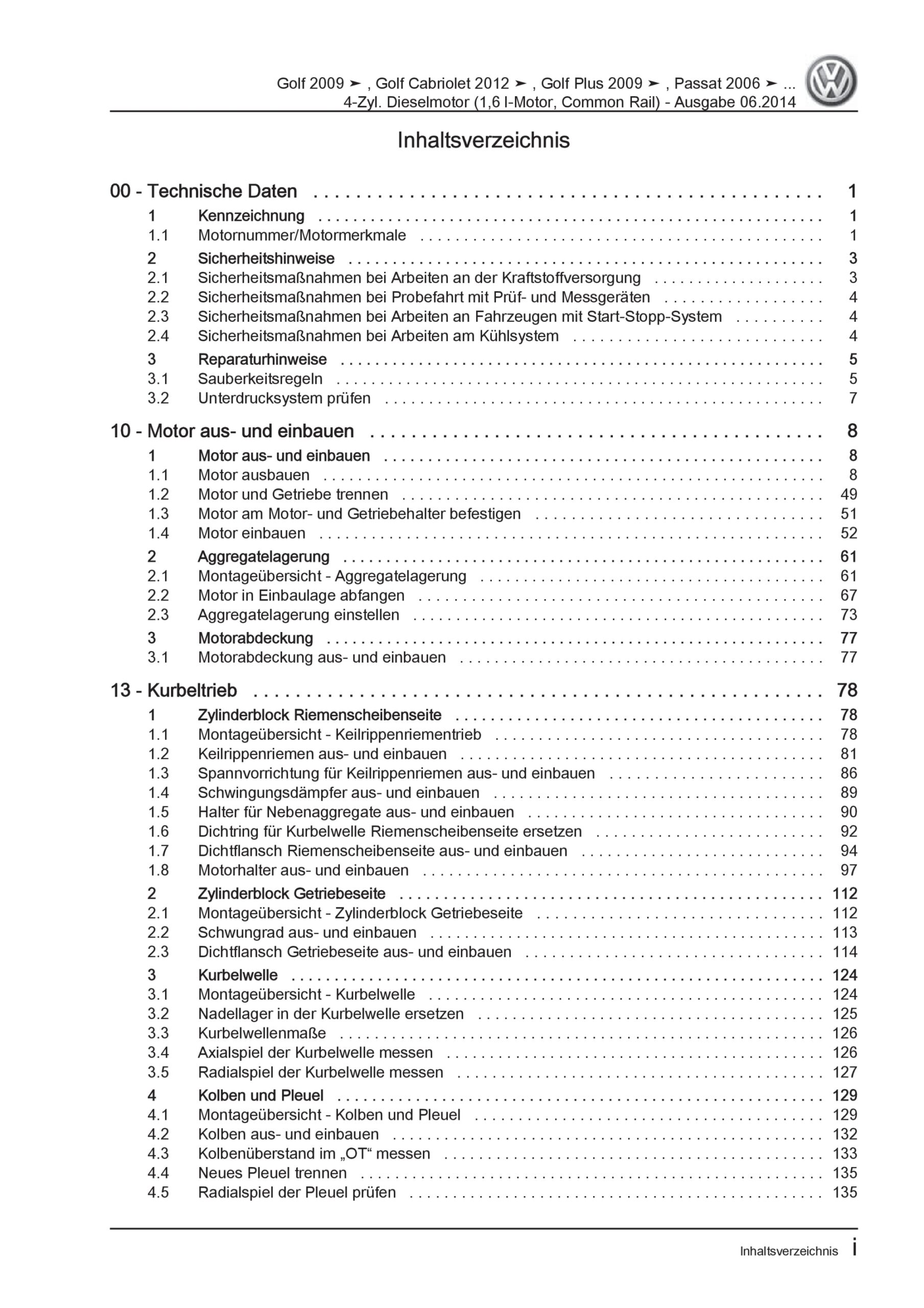 VW Golf 6 1K/5K (08-12) 4-Zyl. 1,6l Dieselmotor TDI 75-105 PS Reparaturanleitung