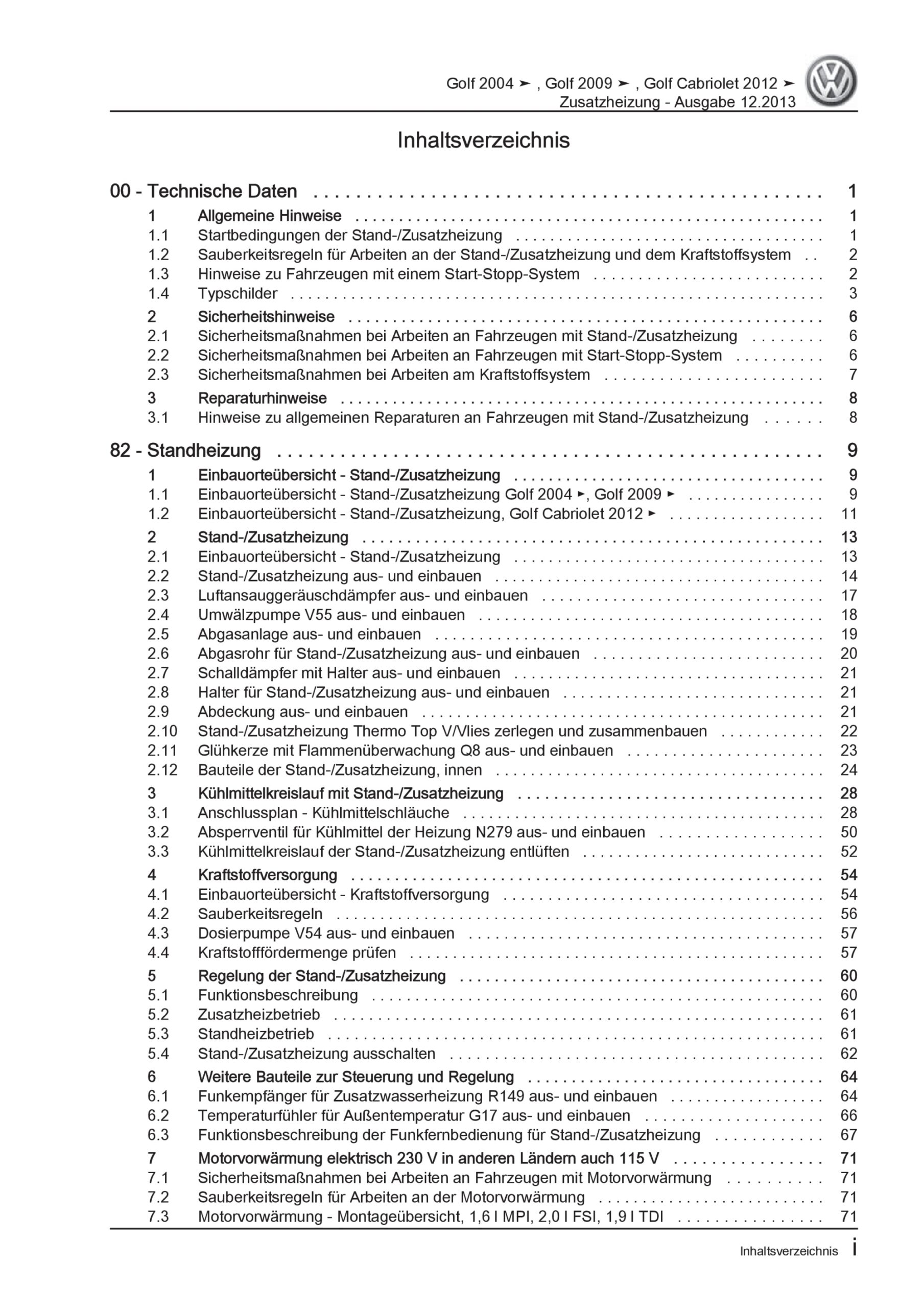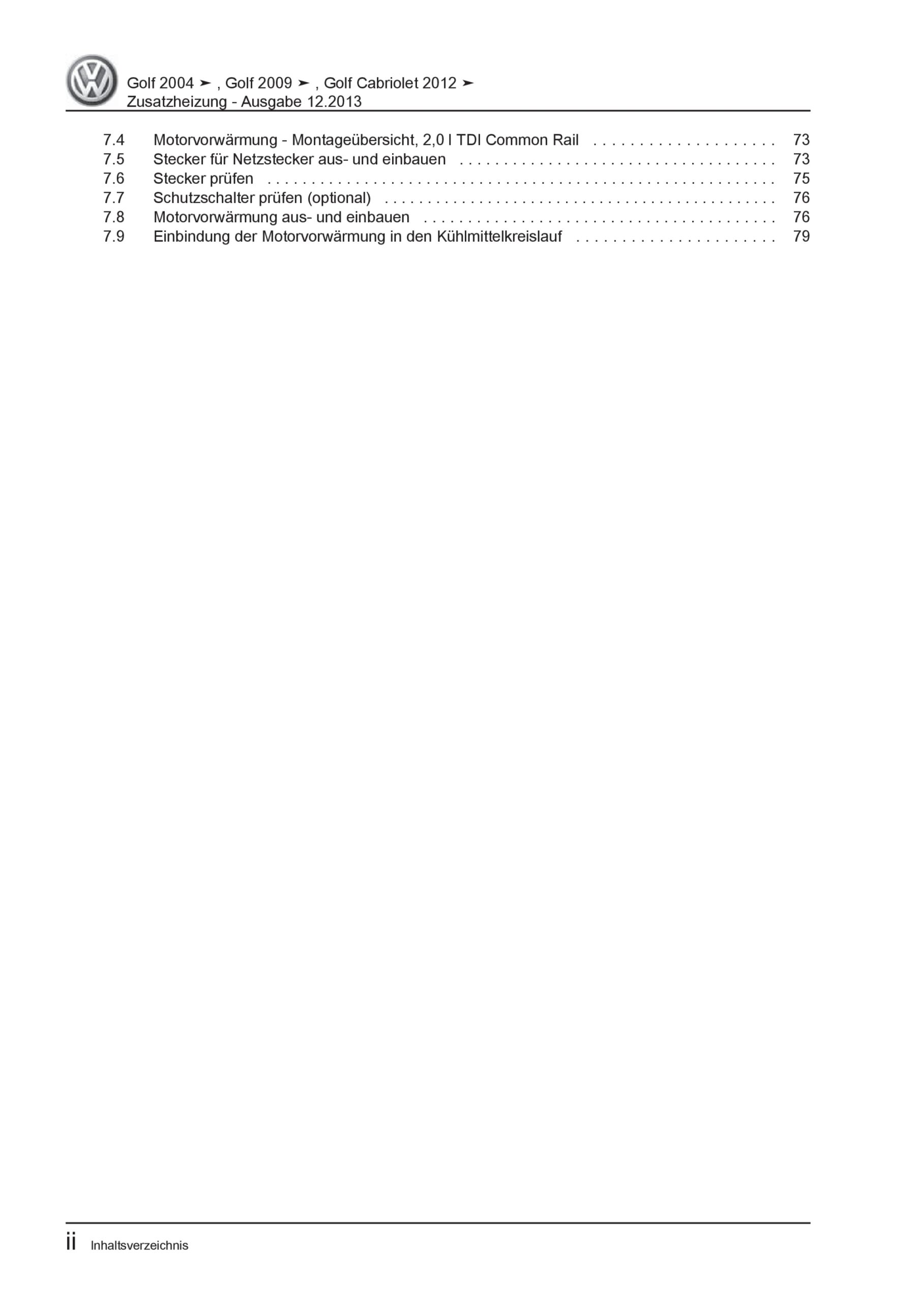 VW Golf 6 Typ 1K/5K 2008-2012 Standheizung Zusatzheizung Reparaturanleitung