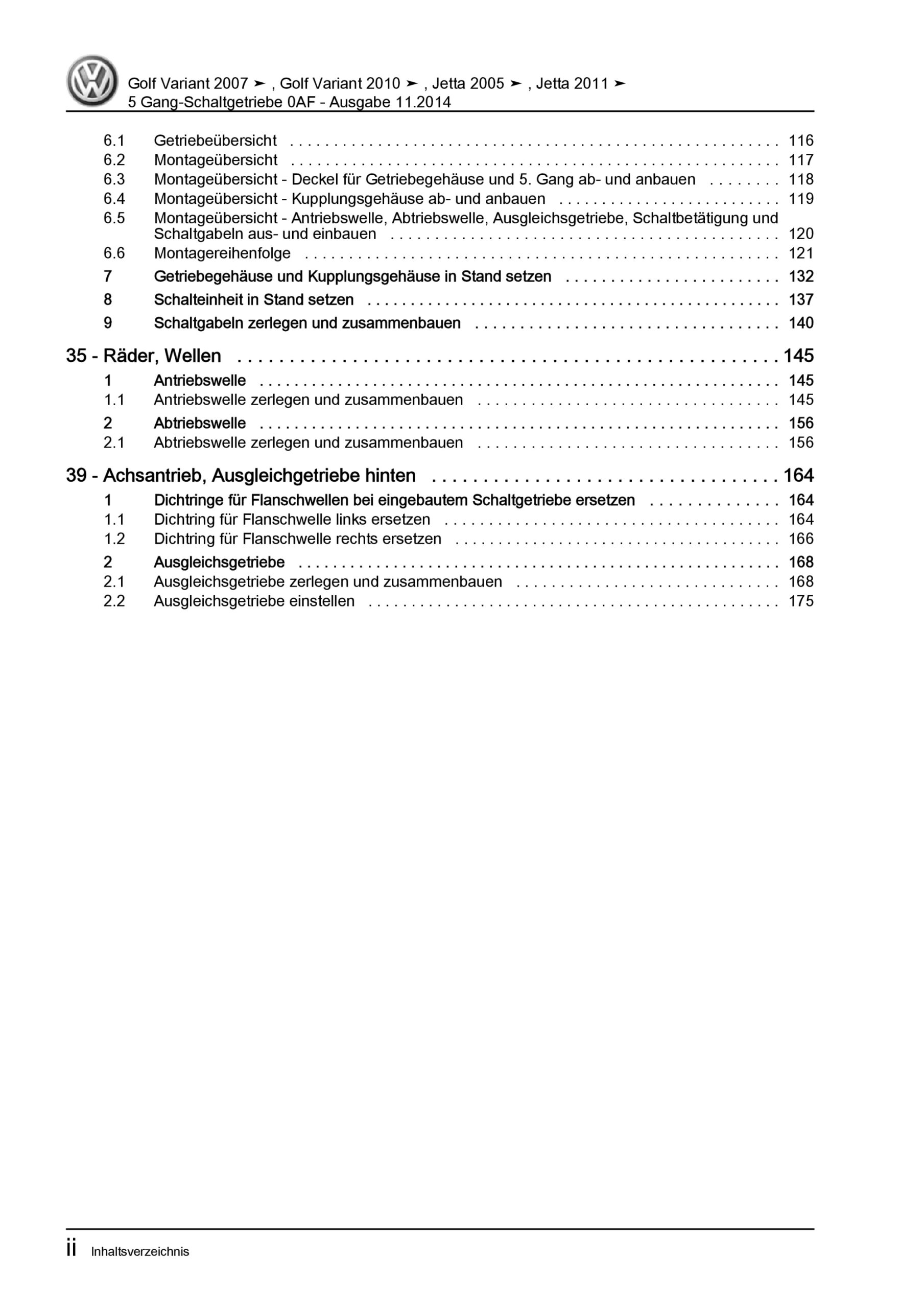 VW Golf 6 Variant (09-13) 5 Gang Schaltgetriebe 0AF Kupplung Reparaturanleitung