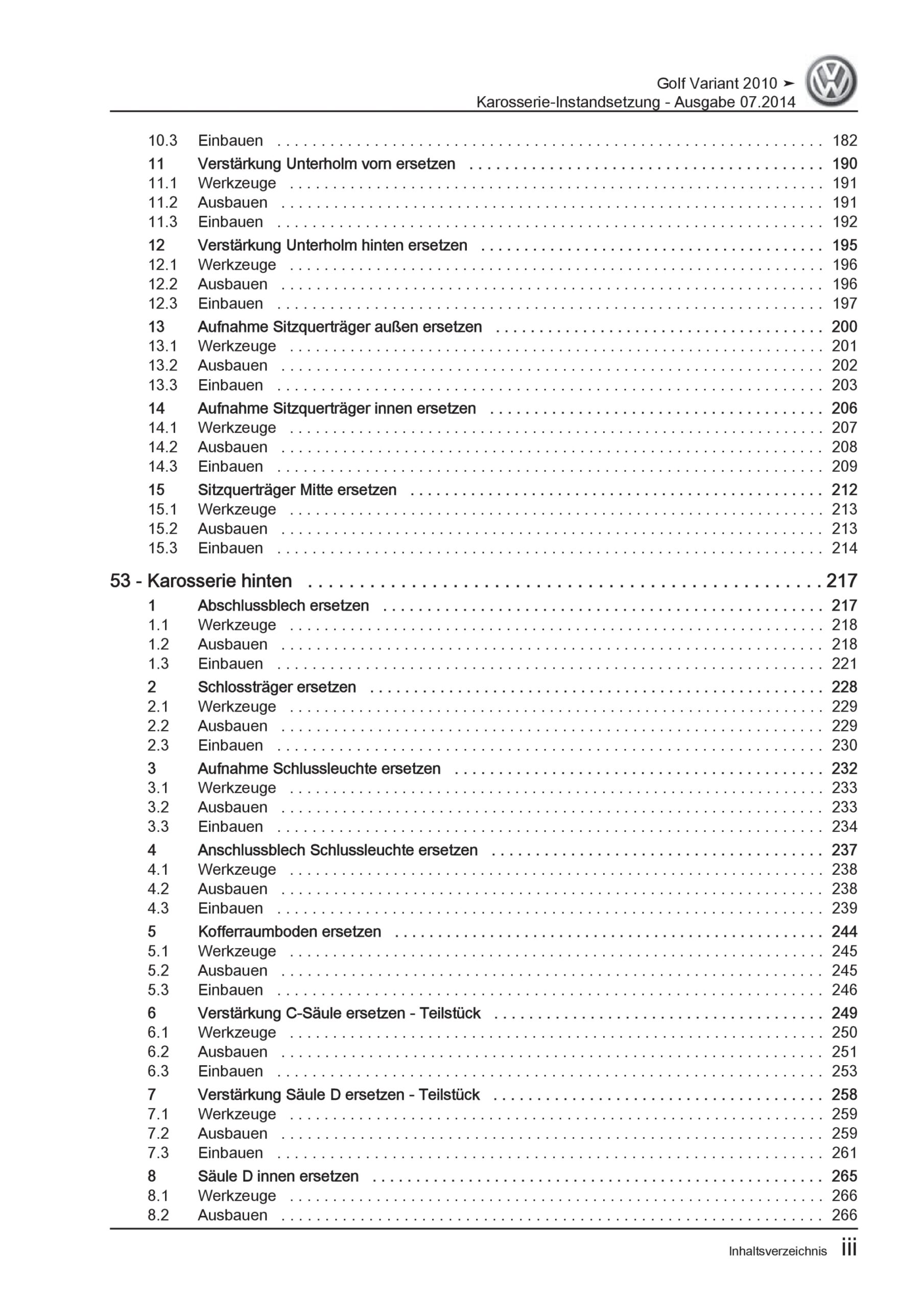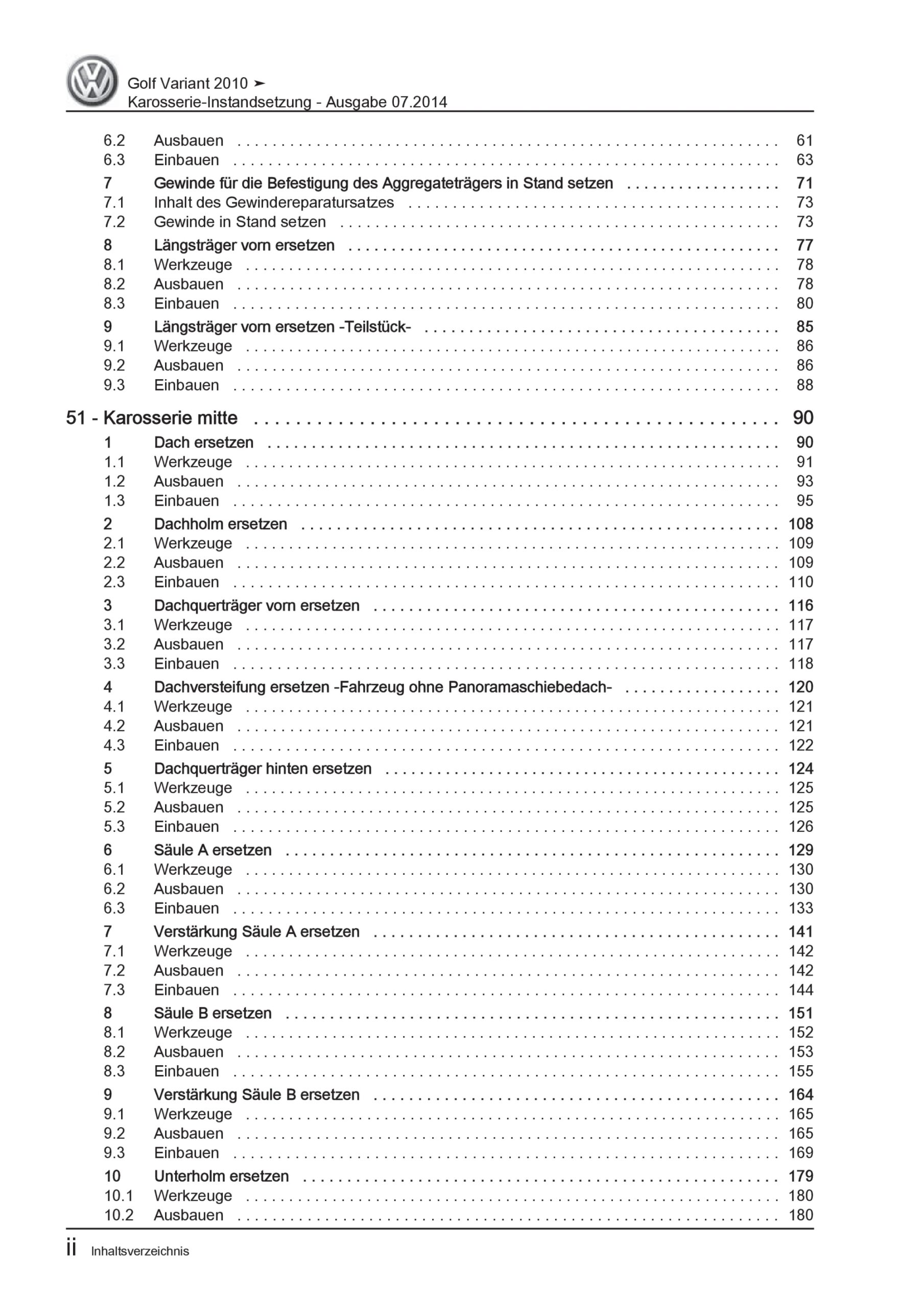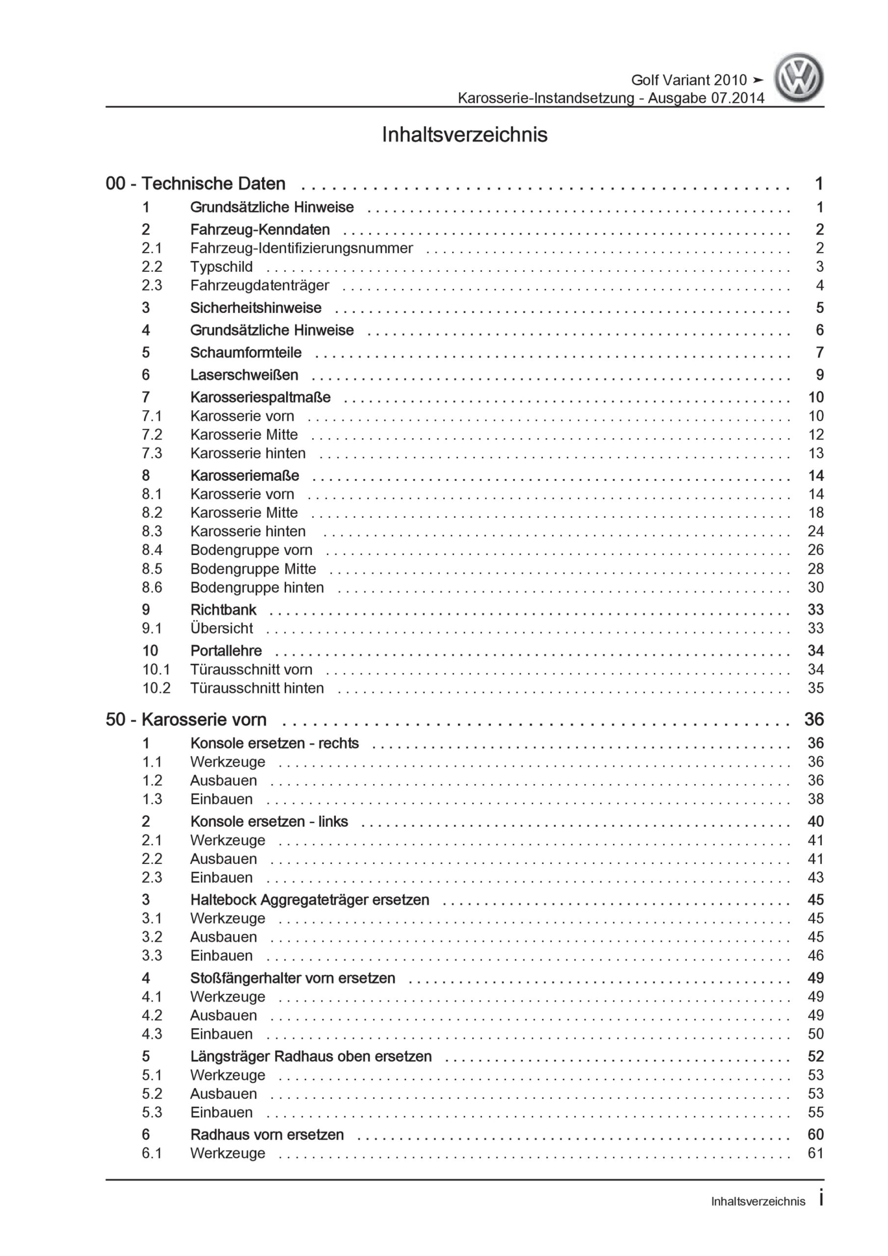 Offizieller VW Golf 6 Vatiant Reparaturleitfaden
