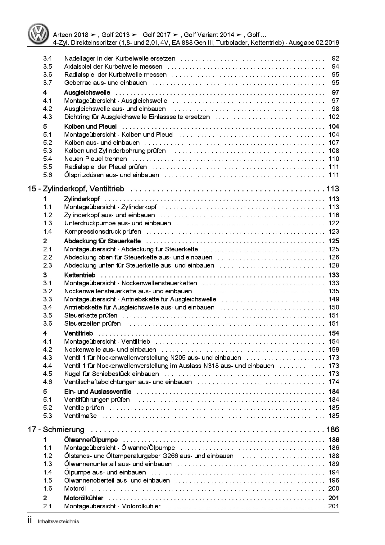 Diese Reparaturanleitung enthält detaillierte Beschreibungen zu Aus- und Einbauarbeiten, Einstell- und Prüfarbeiten sowie zahlreiche Grafiken, Bilder und Explosionszeichnungen. Die Kunststoffringbindung ermöglicht ein problemloses Umschlagen bis zu 180°.