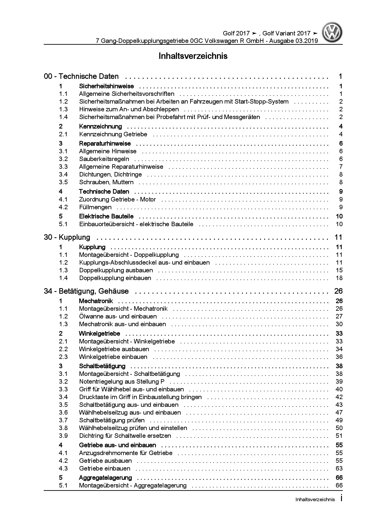 VW Golf 7 5G/AU (16>) 7 Gang Automatikgetriebe DSG DKG 0GC Reparaturanleitung