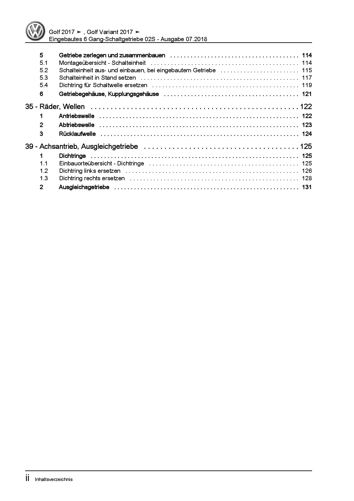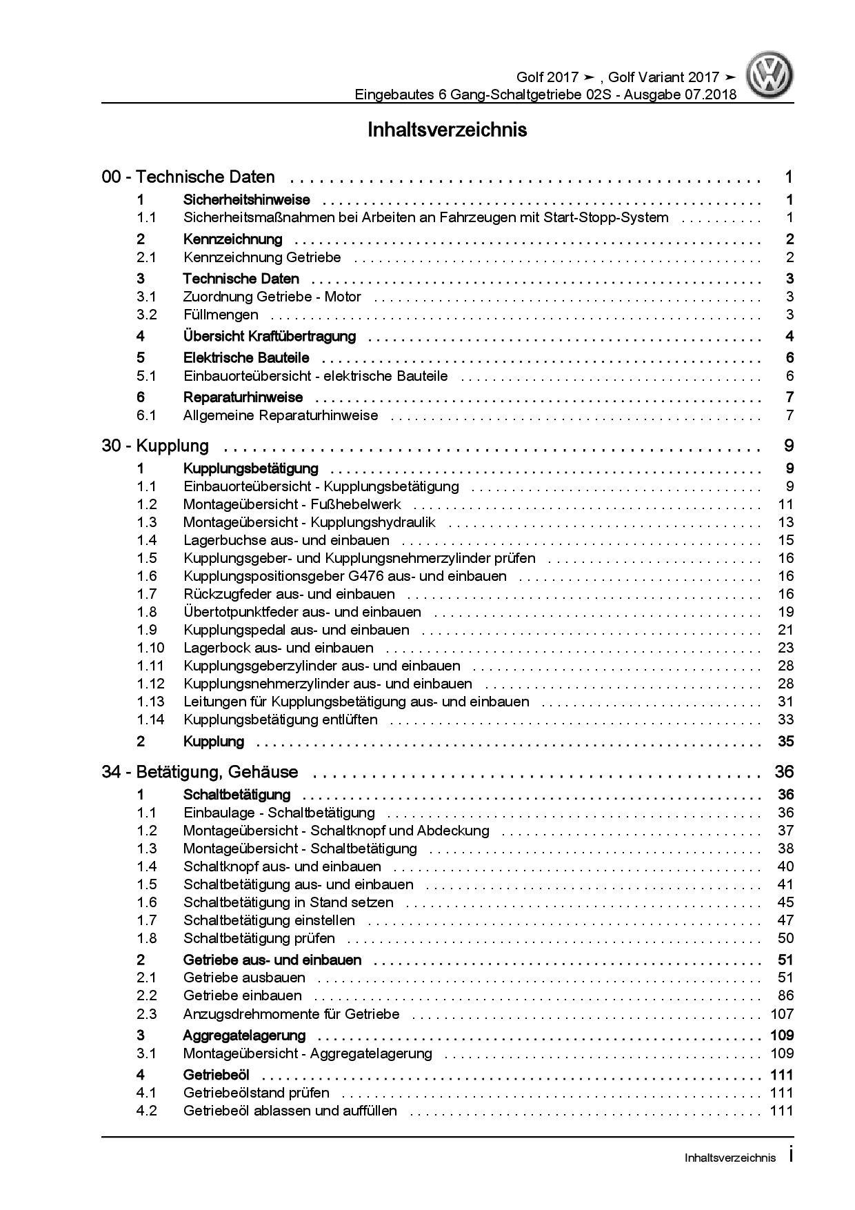VW Golf 7 5G/AU ab 2016 6 Gang Schaltgetriebe 02S Kupplung Reparaturanleitung
