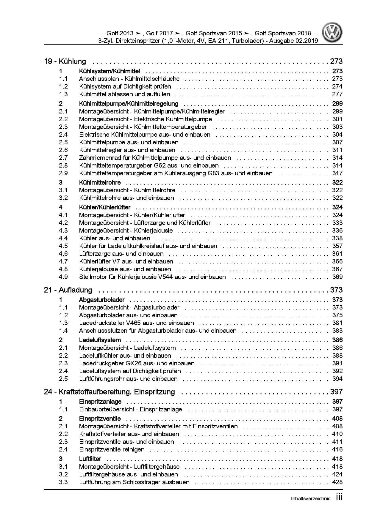 Offizieller VW Golf 7 Sportsvan Typ AN ab 2018 Reparaturleitfaden