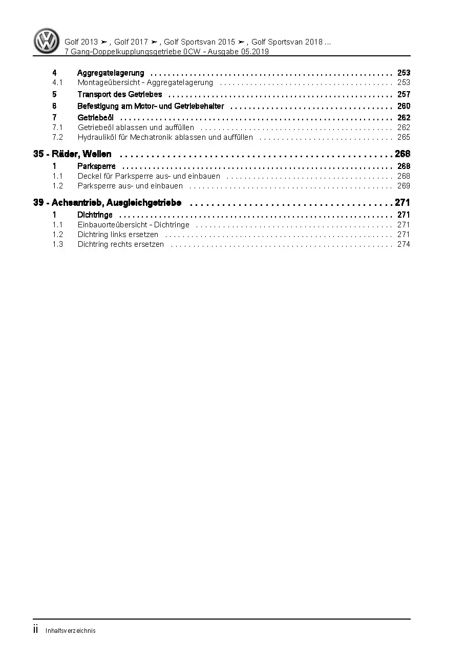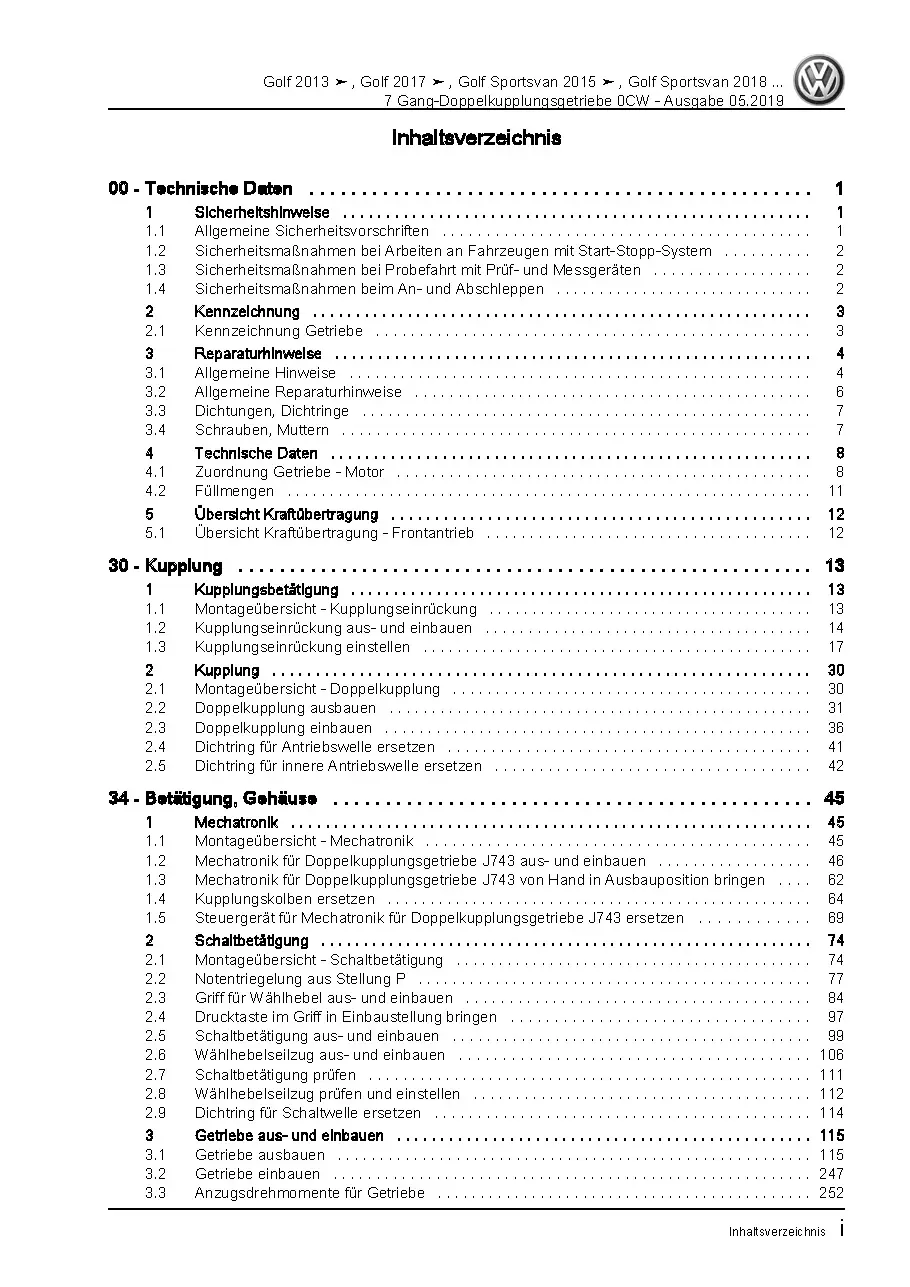 VW Golf 7 Sportsvan AN (18>) 7 Gang Automatikgetriebe DKG 0CW Reparaturanleitung