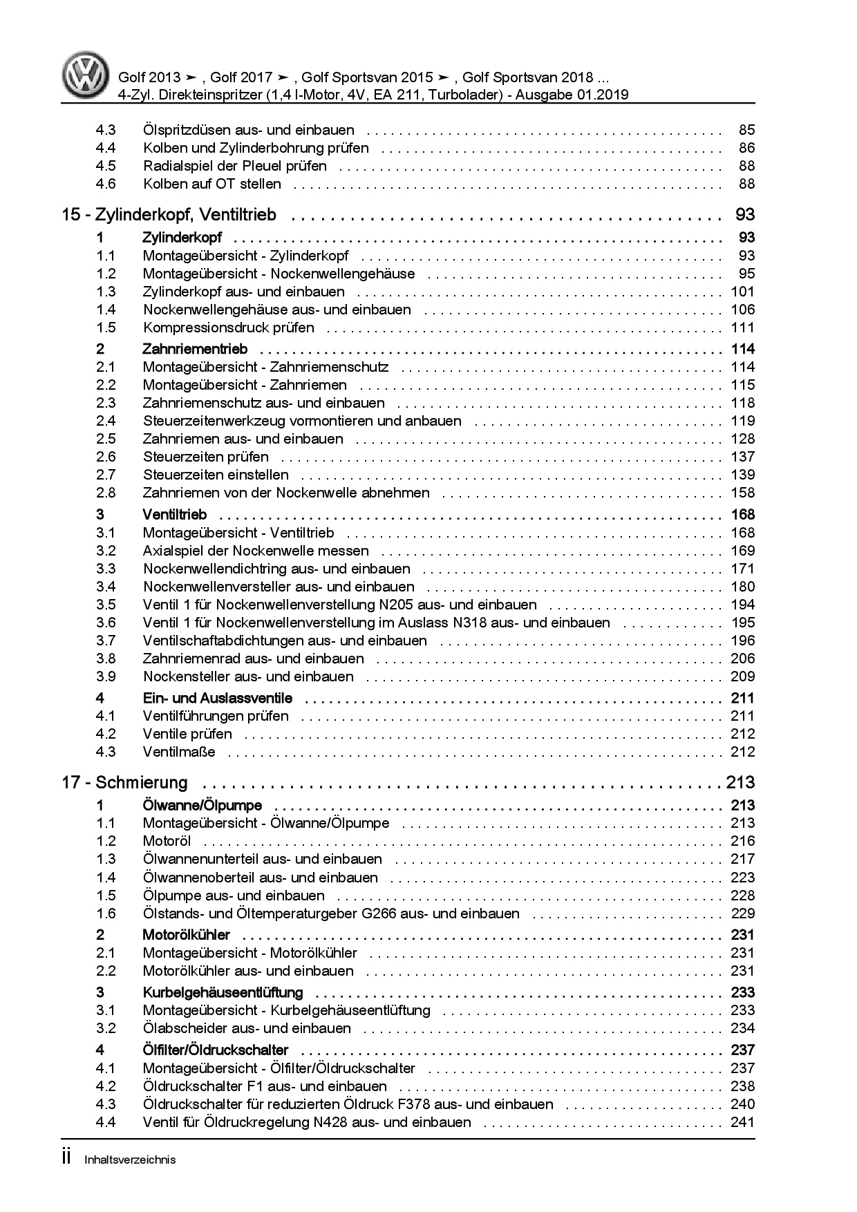 Diese Reparaturanleitung enthält detaillierte Beschreibungen zu Aus- und Einbauarbeiten, Einstell- und Prüfarbeiten sowie zahlreiche Grafiken, Bilder und Explosionszeichnungen. Die Kunststoffringbindung ermöglicht ein problemloses Umschlagen bis zu 180°.