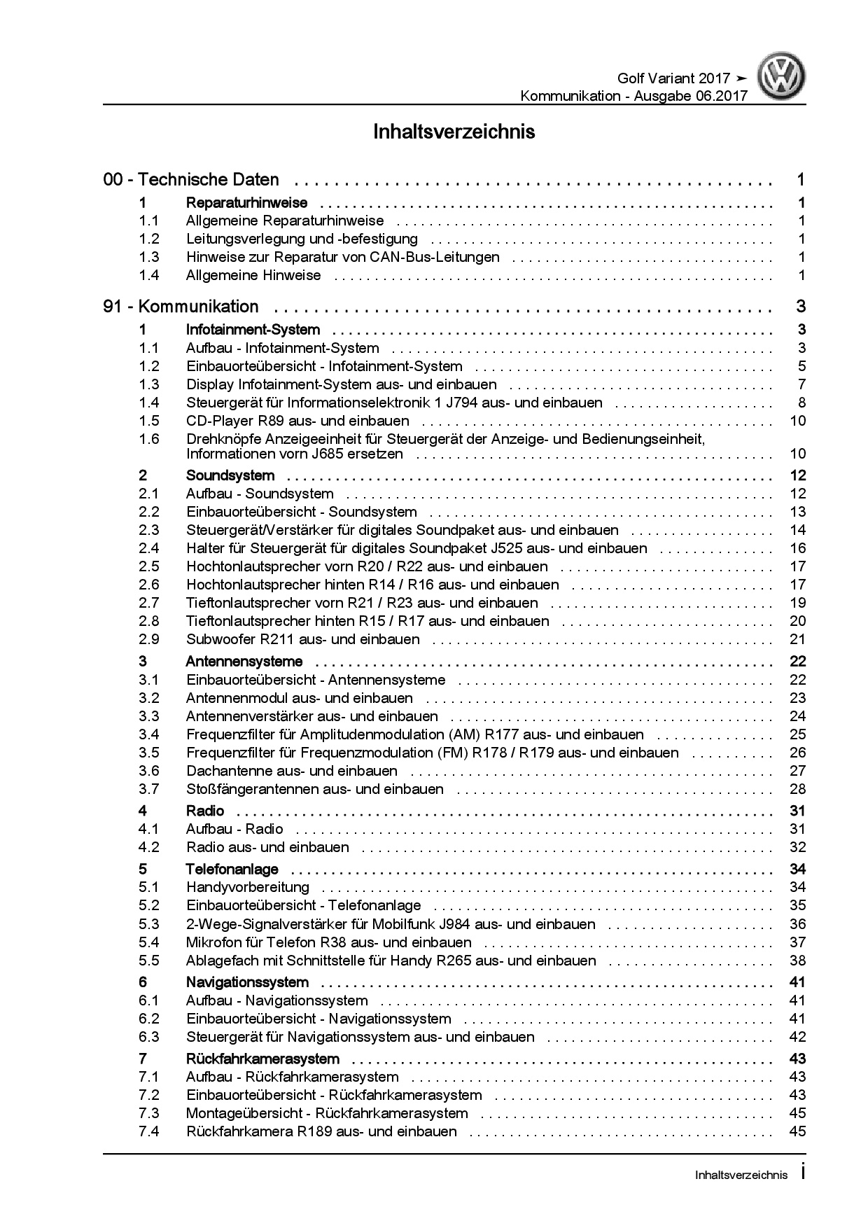 VW Golf 7 Variant ab 2017 Radio Navigation Kommunikation Reparaturanleitung