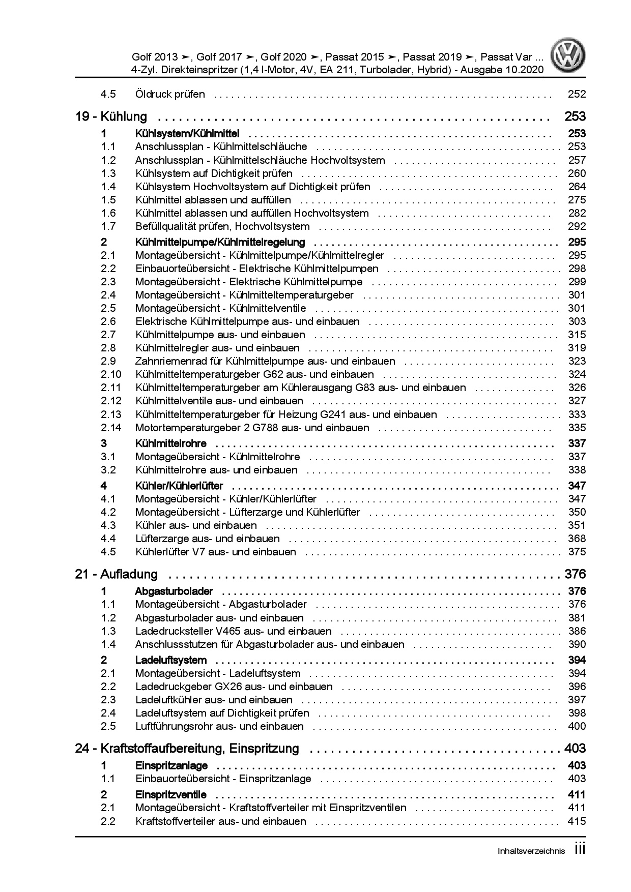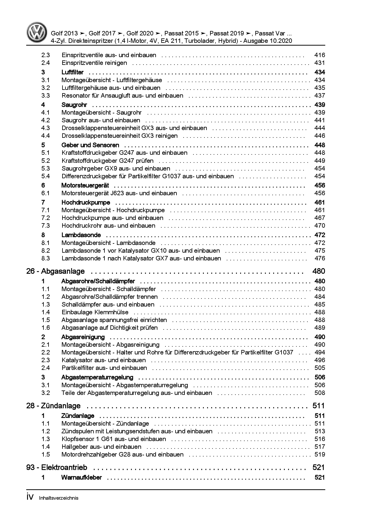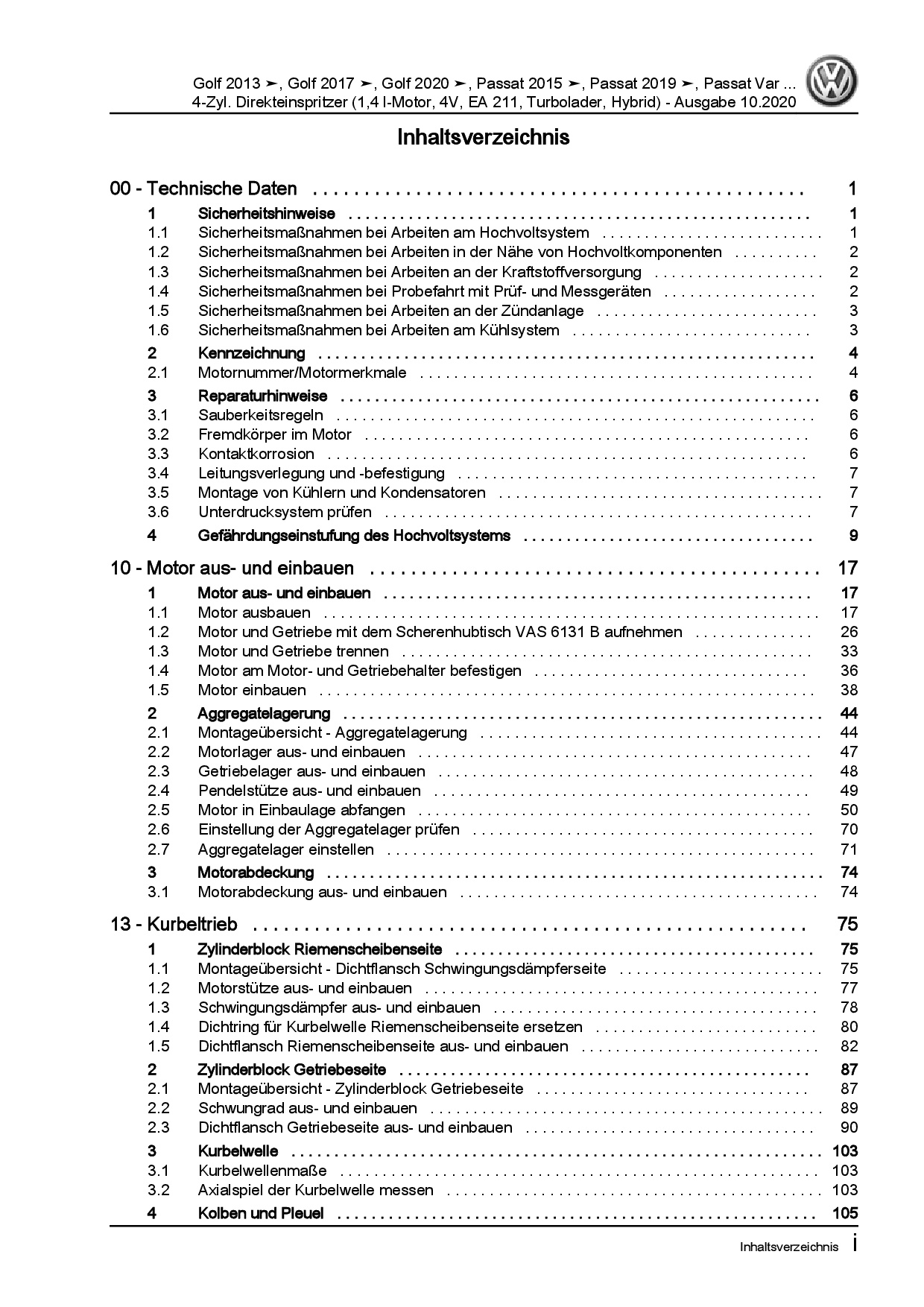 VW Golf 8 Typ CD ab 2019 4-Zyl. 1,4l Benzinmotor 150-156 PS Reparaturanleitung