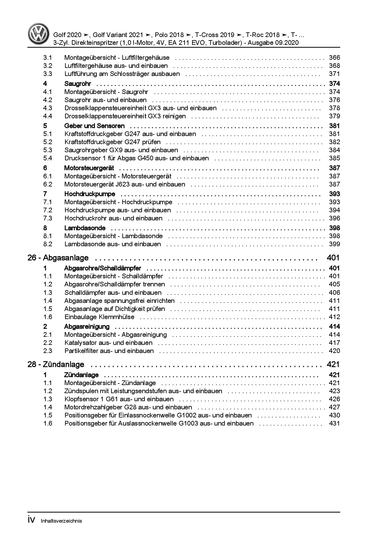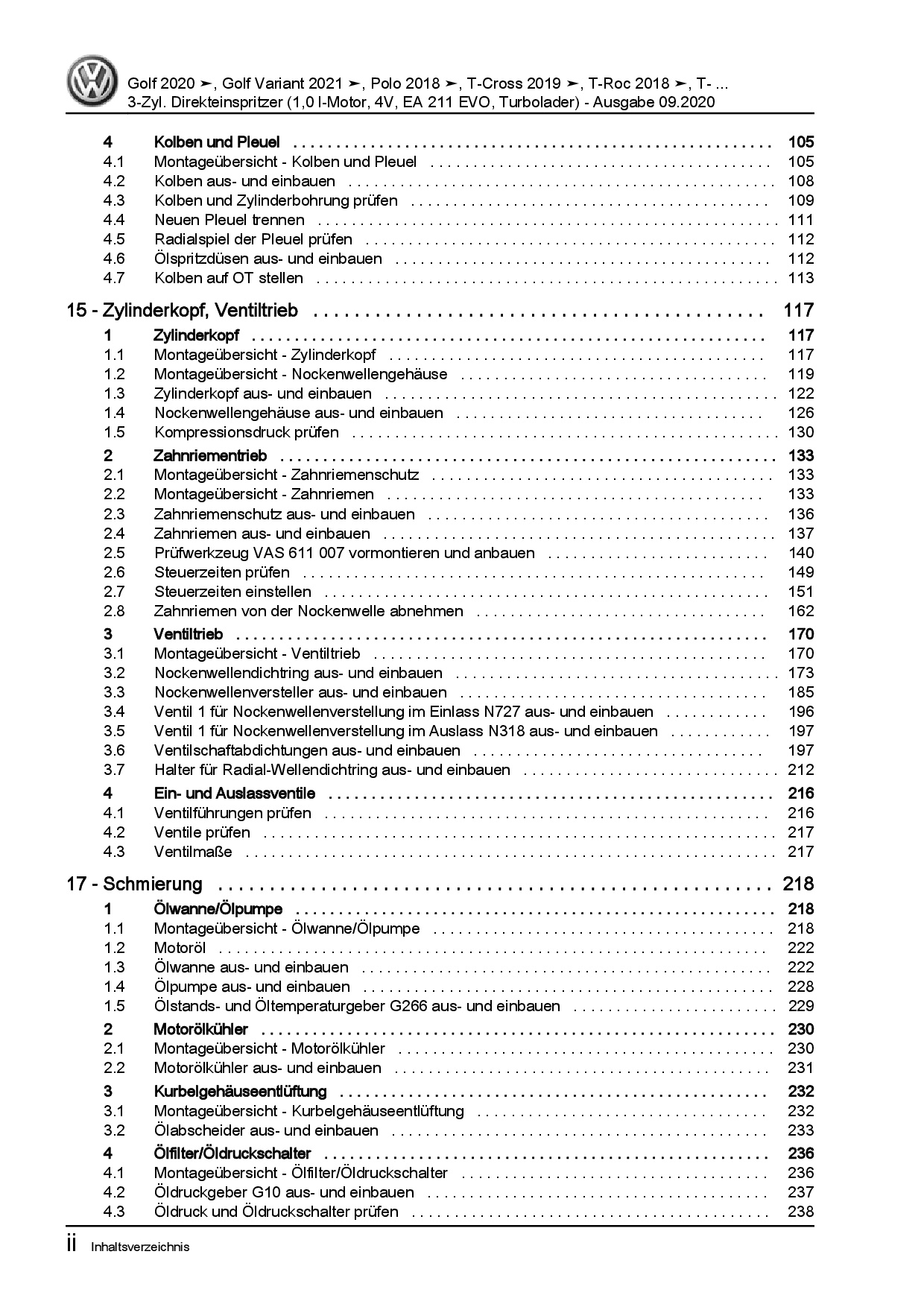 Diese Reparaturanleitung enthält detaillierte Beschreibungen zu Aus- und Einbauarbeiten, Einstell- und Prüfarbeiten sowie zahlreiche Grafiken, Bilder und Explosionszeichnungen. Die Kunststoffringbindung ermöglicht ein problemloses Umschlagen bis zu 180°.