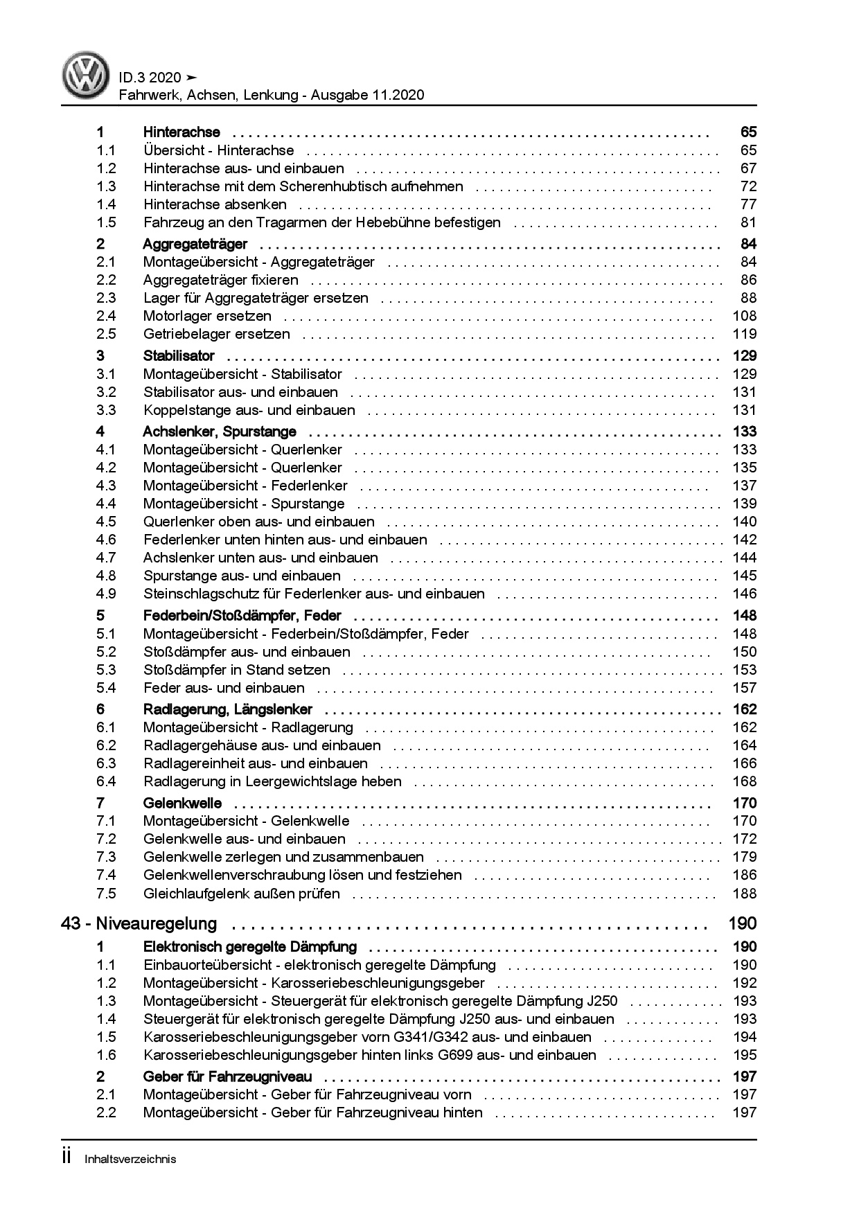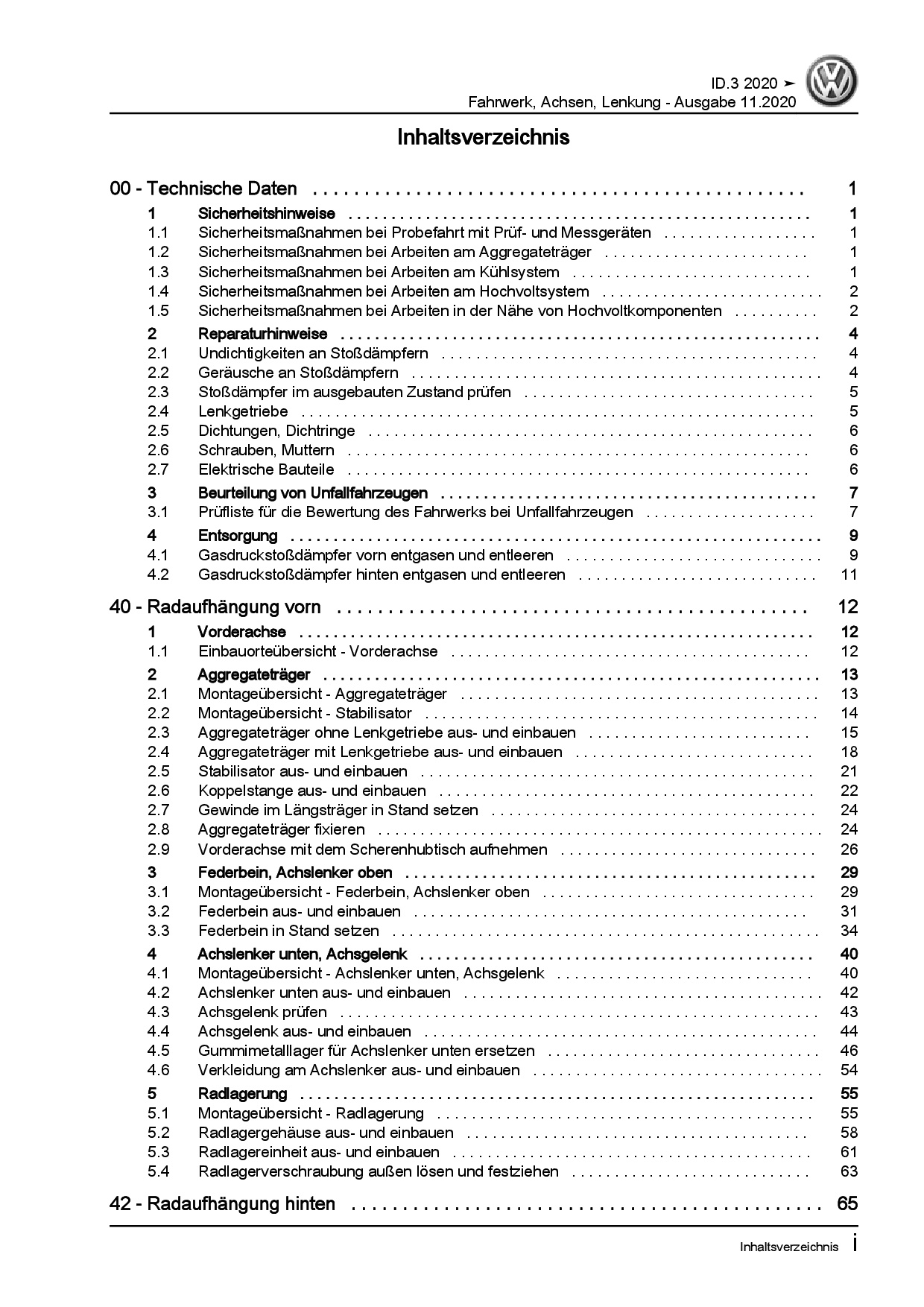VW ID.3 Typ E11 ab 2019 Fahrwerk Achsen Lenkung Reparaturanleitung