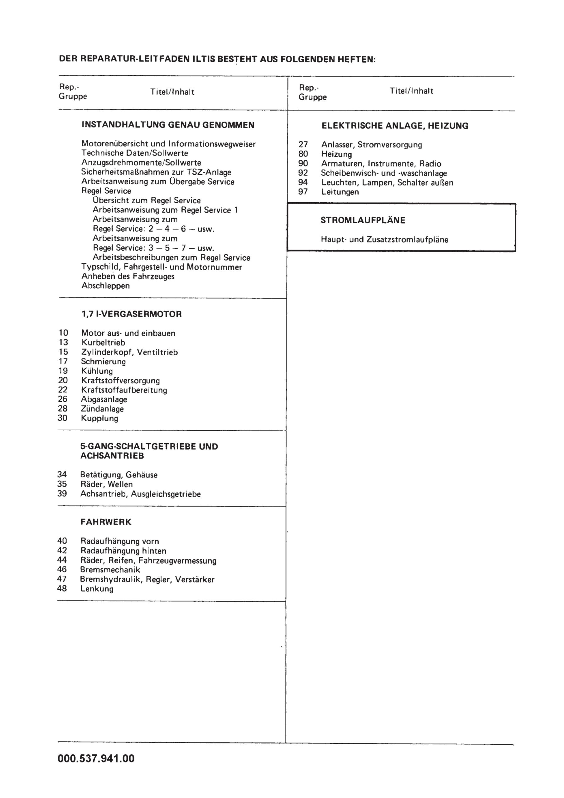 Diese Reparaturanleitung enthält detaillierte Beschreibungen zu Aus- und Einbauarbeiten, Einstell- und Prüfarbeiten sowie zahlreiche Grafiken, Bilder und Explosionszeichnungen. Die Kunststoffringbindung ermöglicht ein problemloses Umschlagen bis zu 180°.