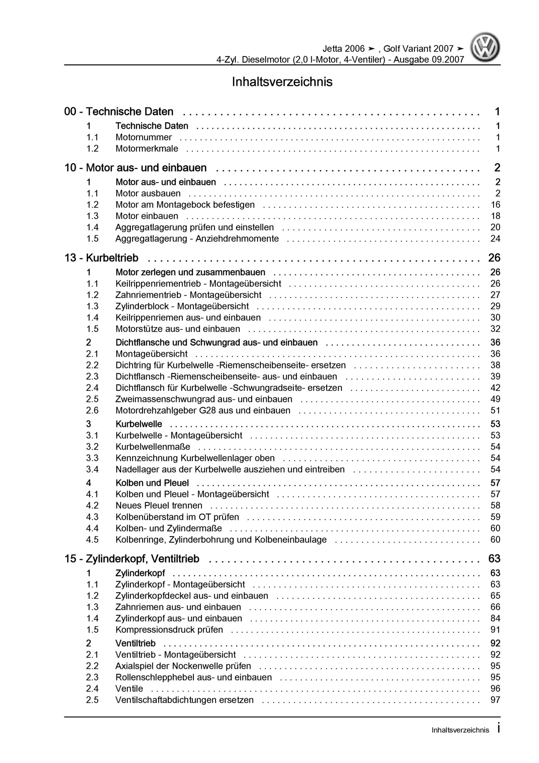 VW Jetta 5 1K (04-10) 4-Zyl. 2,0l Dieselmotor TDI 136-170 PS Reparaturanleitung