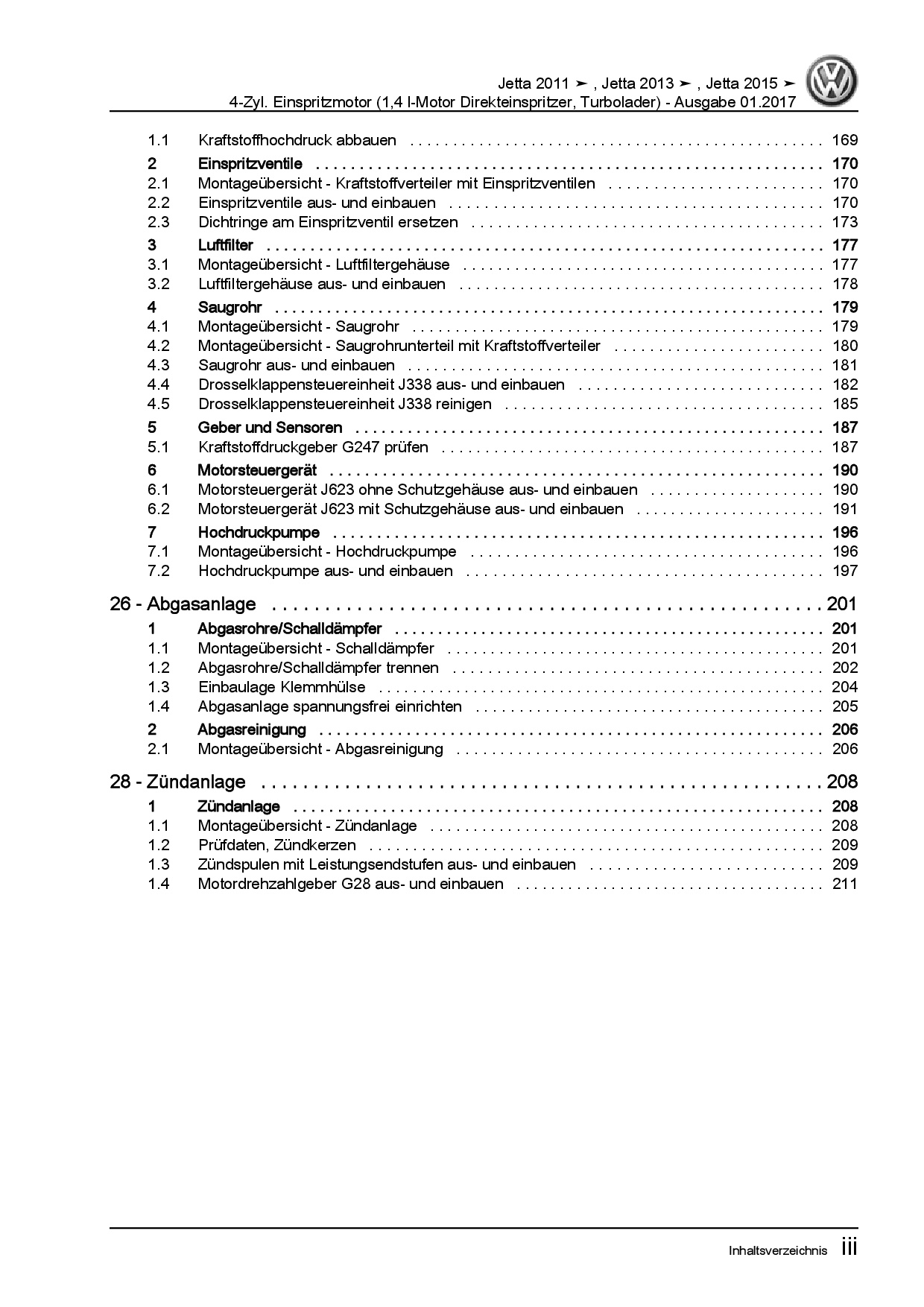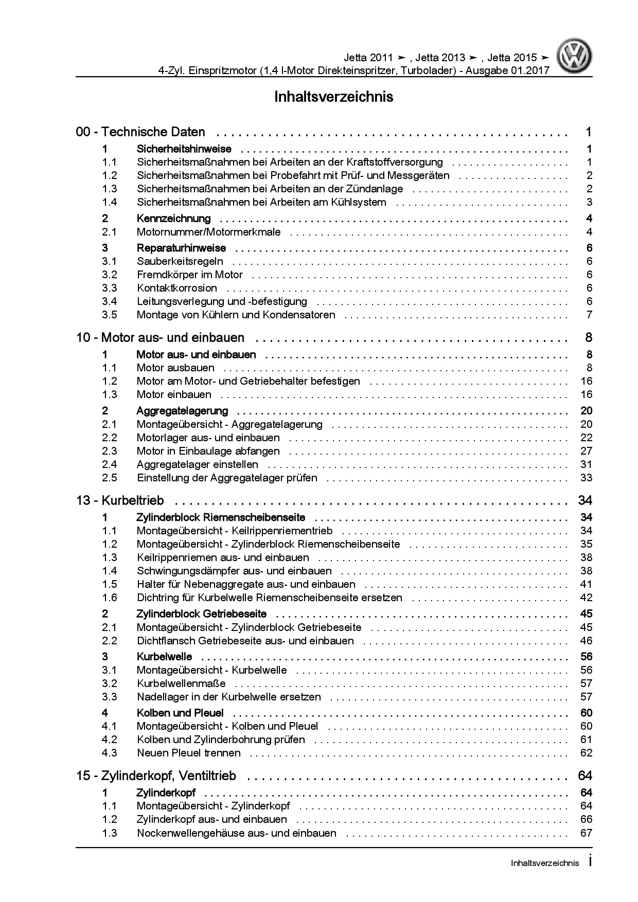 VW Jetta 6 Typ AV 2014-2018 4-Zyl. 1,4l Benzinmotor 122 PS Reparaturanleitung