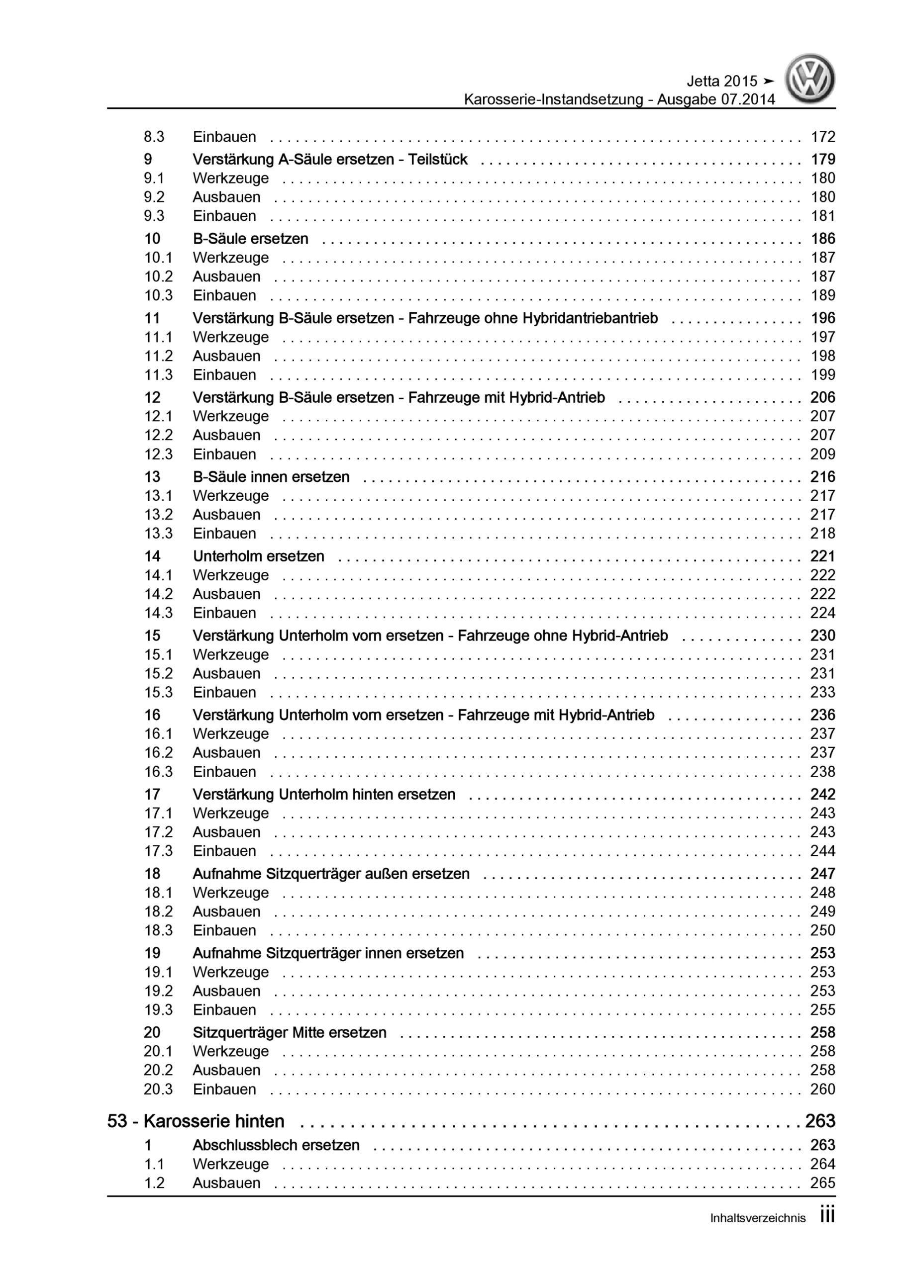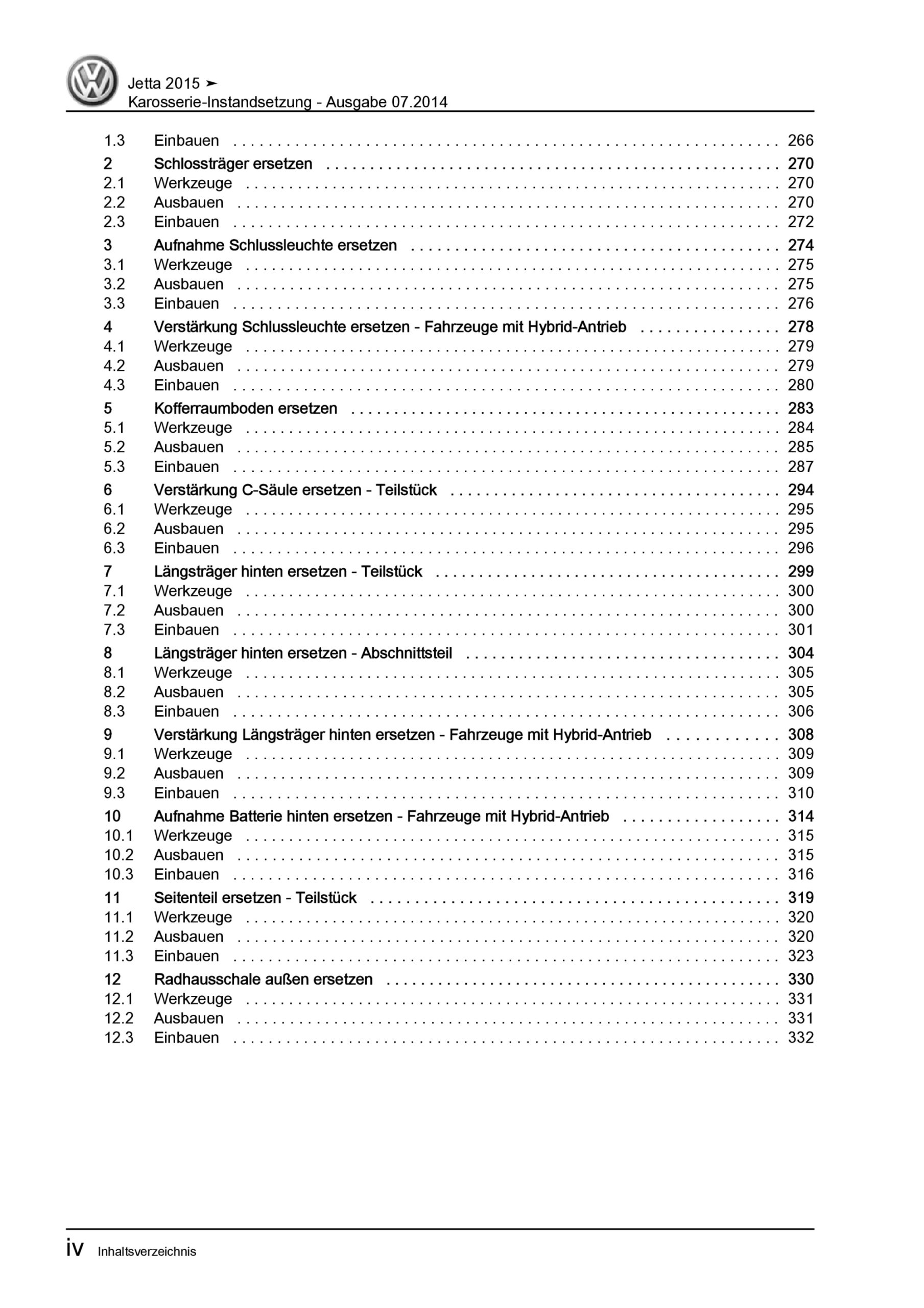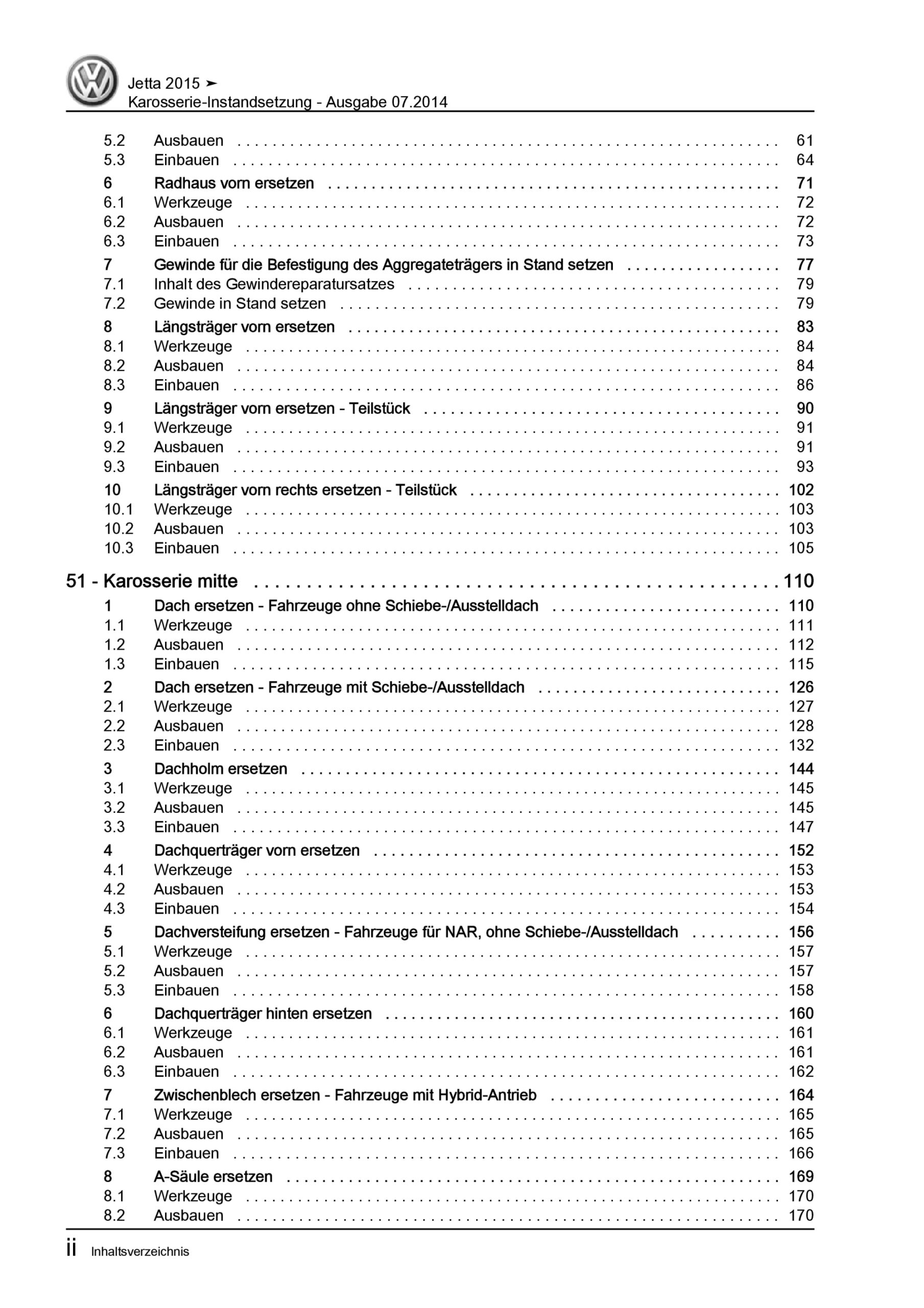 VW Jetta 6 Typ AV 2014-2018 Karosserie Unfall Instandsetzung Reparaturanleitung