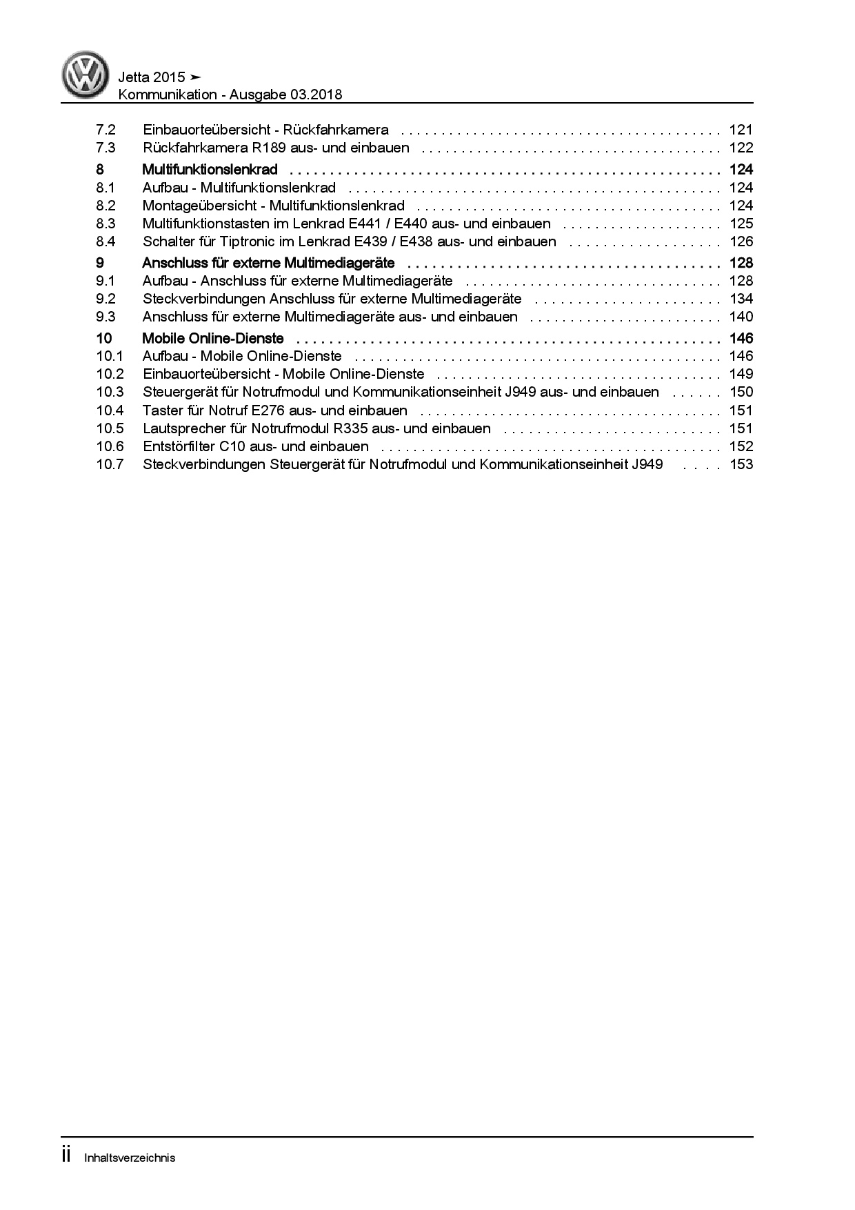 Diese Reparaturanleitung enthält detaillierte Beschreibungen zu Aus- und Einbauarbeiten, Einstell- und Prüfarbeiten sowie zahlreiche Grafiken, Bilder und Explosionszeichnungen. Die Kunststoffringbindung ermöglicht ein problemloses Umschlagen bis zu 180°.