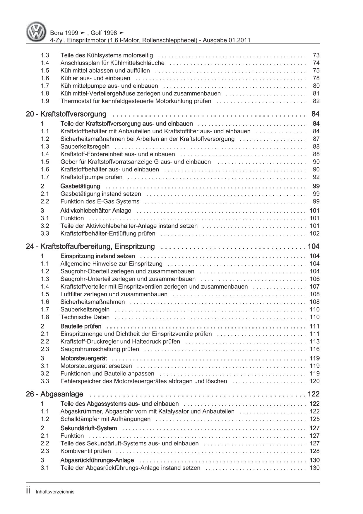 Diese Reparaturanleitung enthält detaillierte Beschreibungen zu Aus- und Einbauarbeiten, Einstell- und Prüfarbeiten sowie zahlreiche Grafiken, Bilder und Explosionszeichnungen. Die Kunststoffringbindung ermöglicht ein problemloses Umschlagen bis zu 180°.