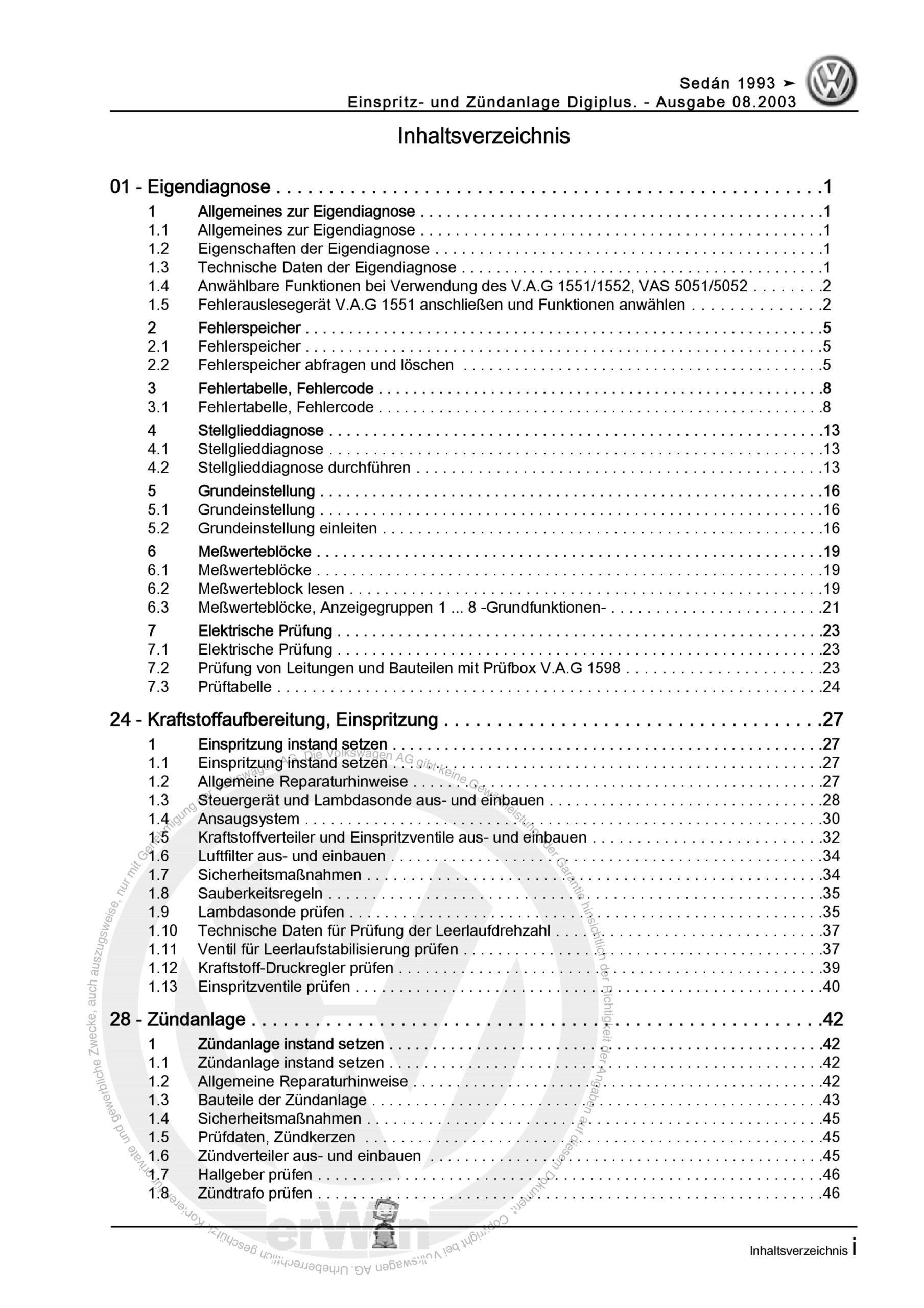 VW Käfer Sedan 1991-2004 Einspritz- und Zündanlage Digiplus Reparaturanleitung