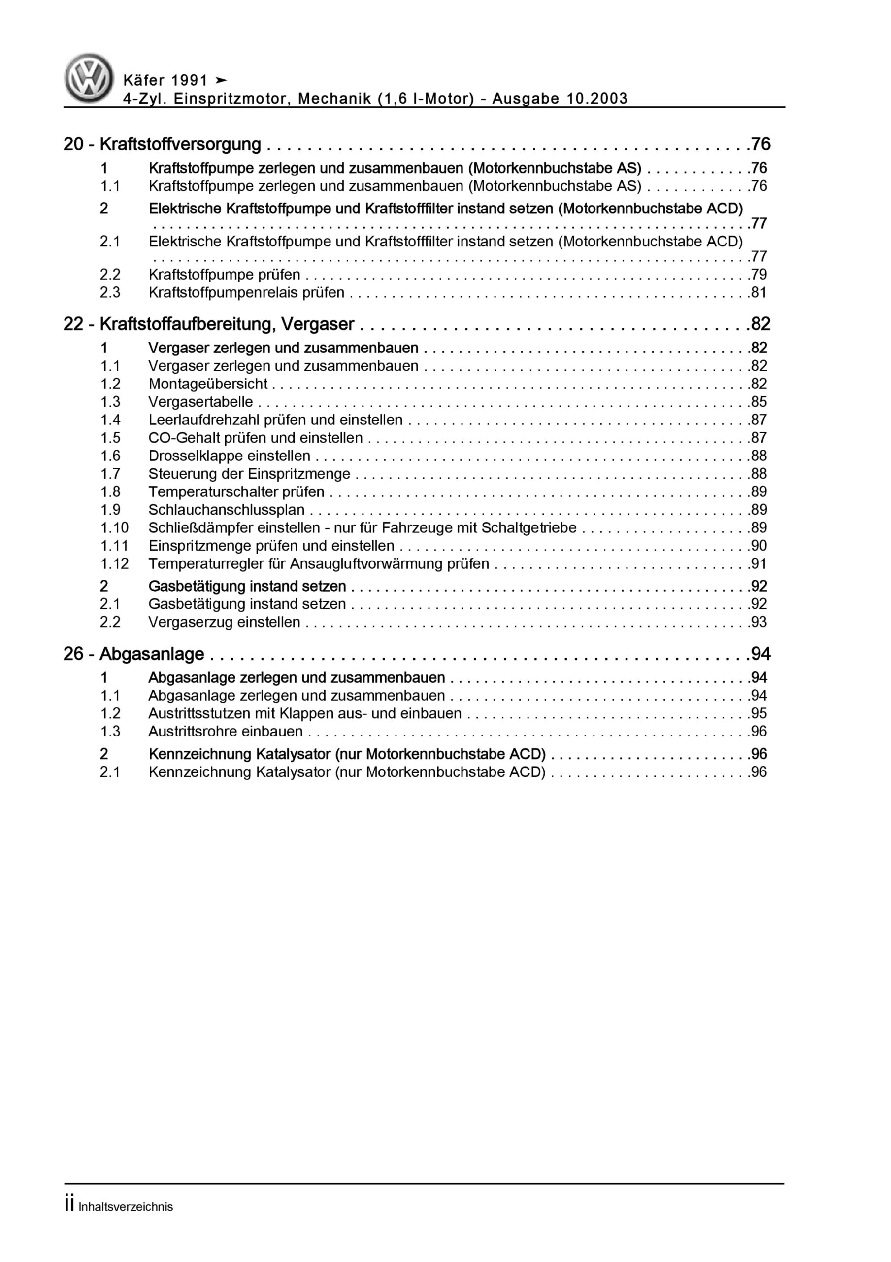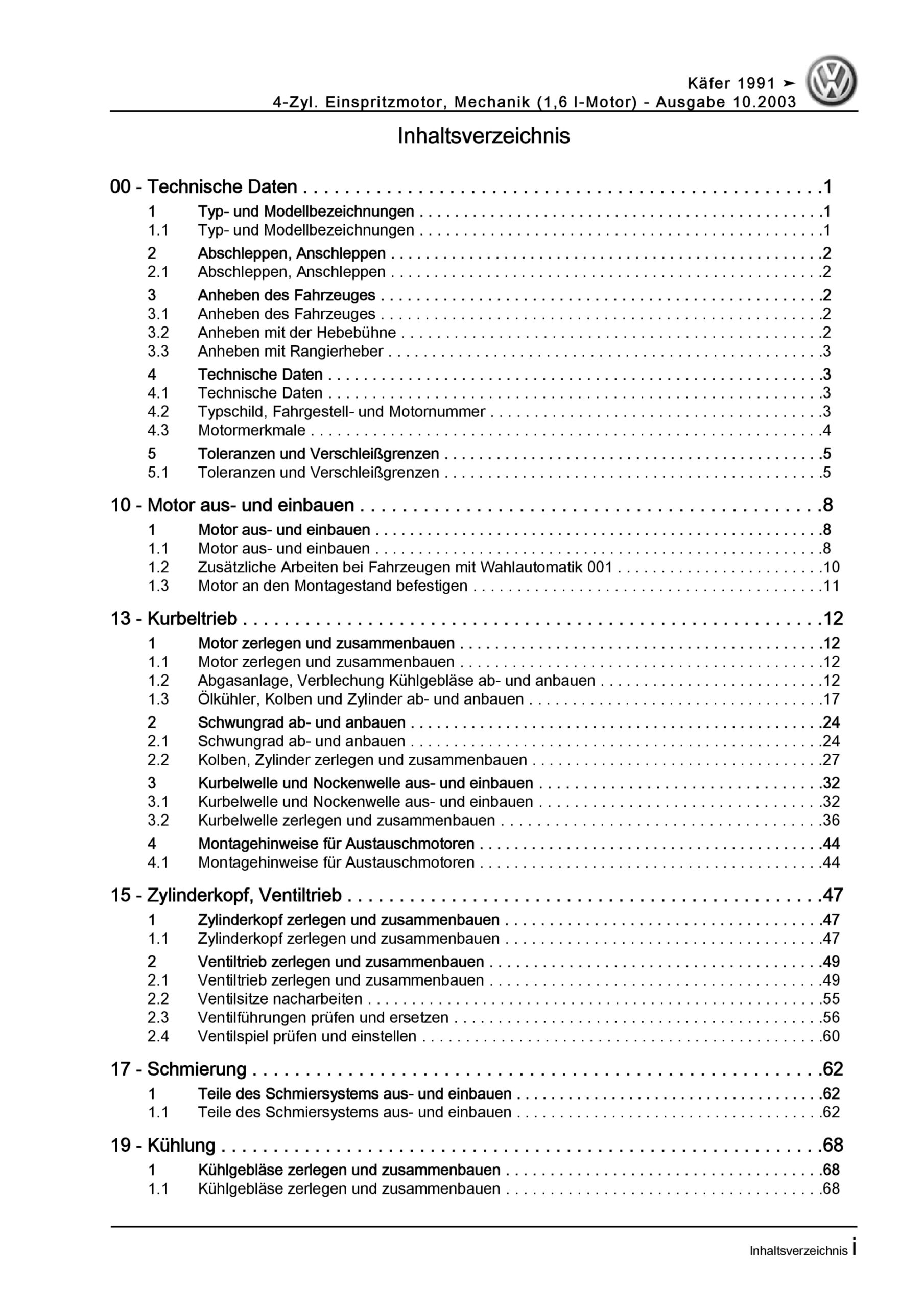 Offizieller VW Käfer und Sedan Reparaturleitfaden