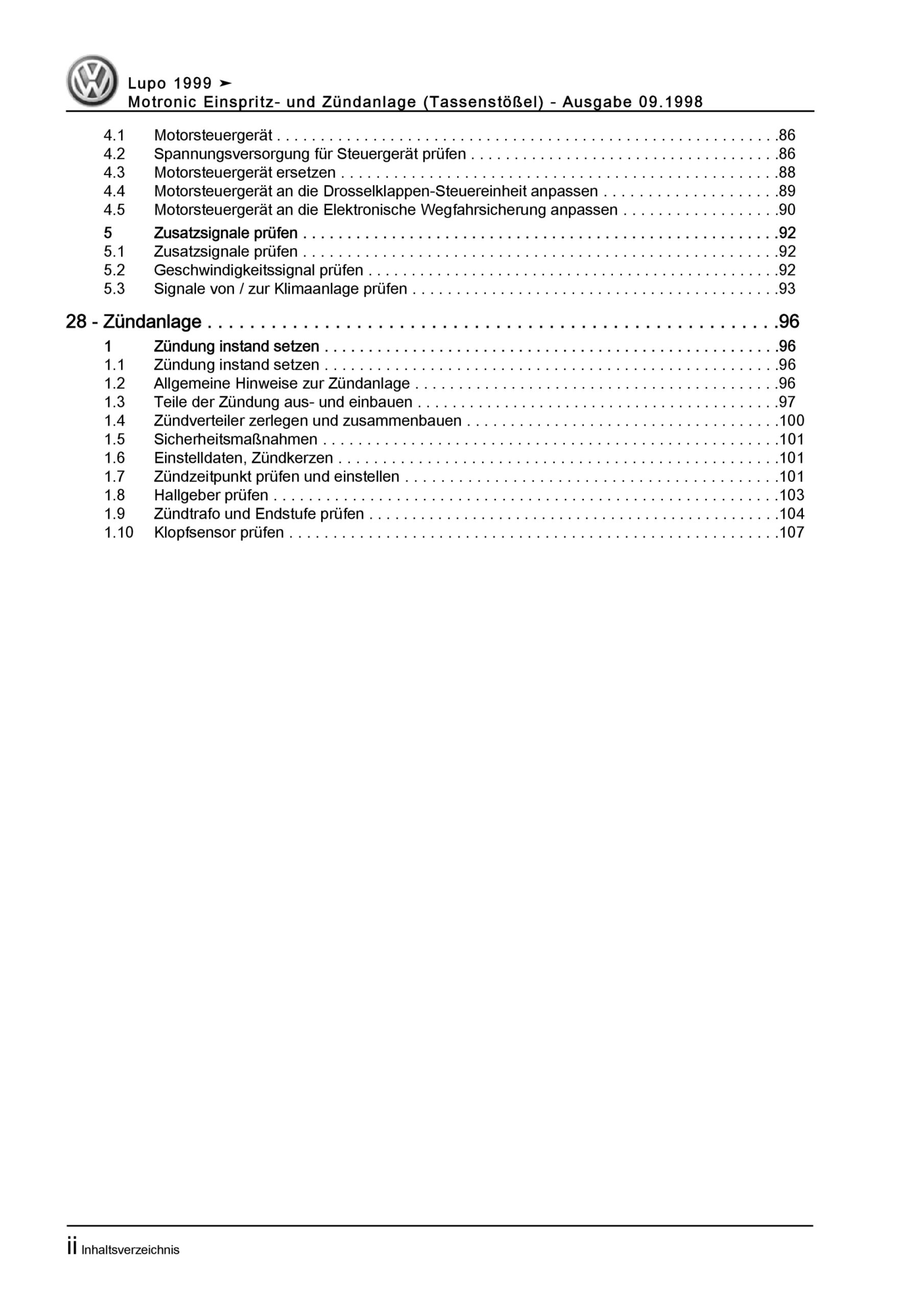 Der VW Lupo Reparaturleitfaden ist ein lizenzierter Nachdruck der originalen Werkstattunterlagen. Diese Anleitung wird von Vertragswerkstätten verwendet und enthält alle technischen Informationen für fachgerechte Reparaturen.