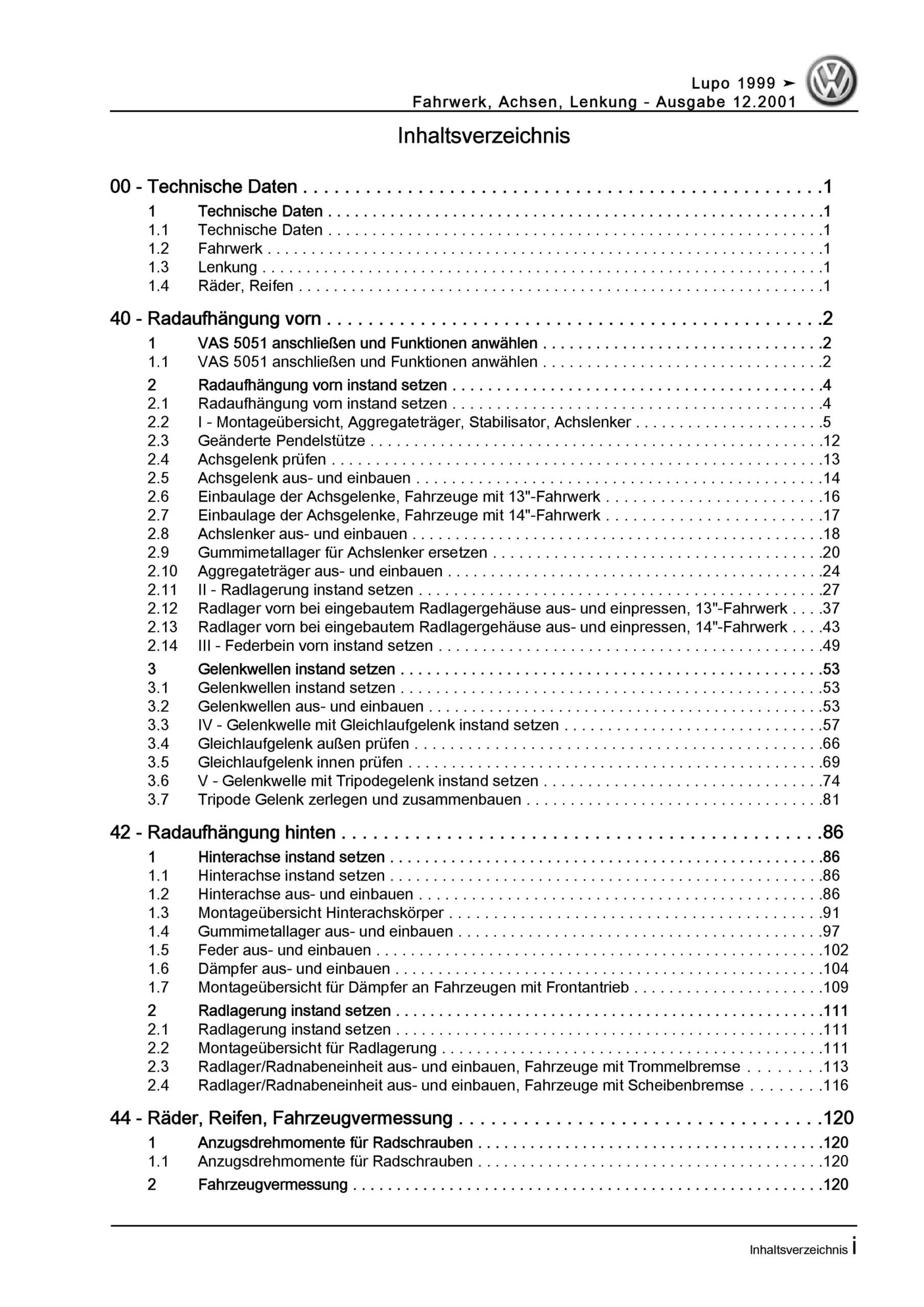 Offizieller VW Lupo Reparaturleitfaden