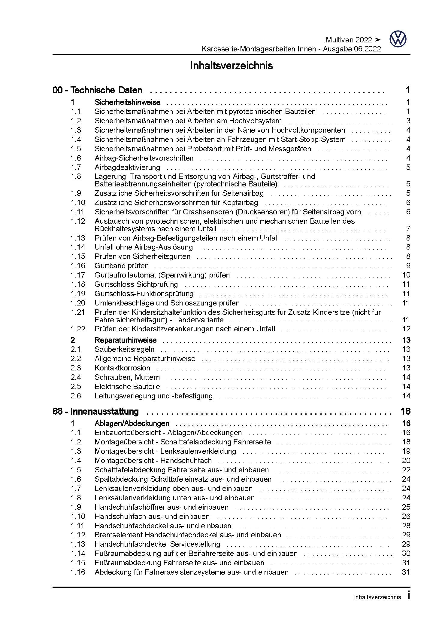 Offizieller VW Multivan Reparaturleitfaden