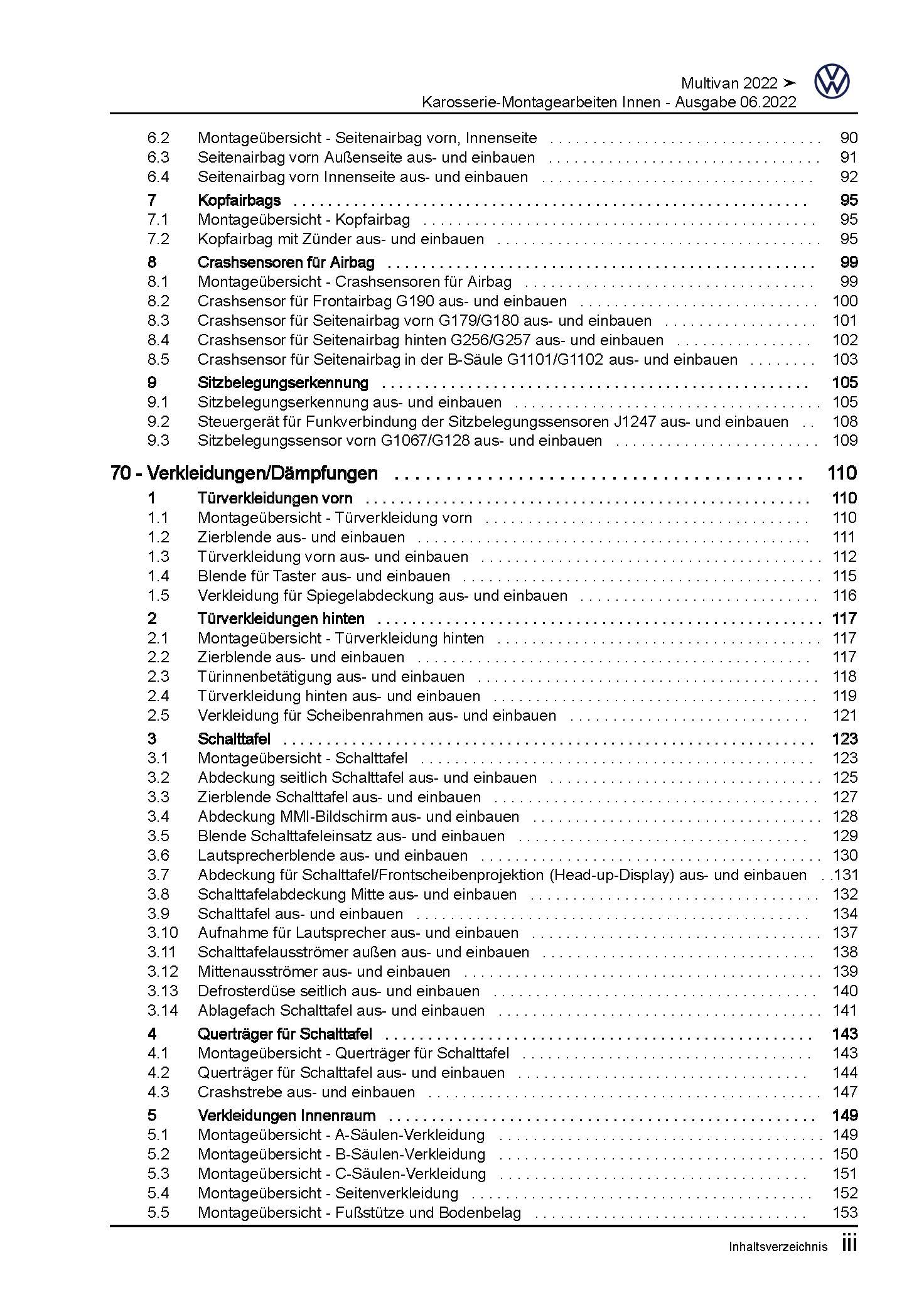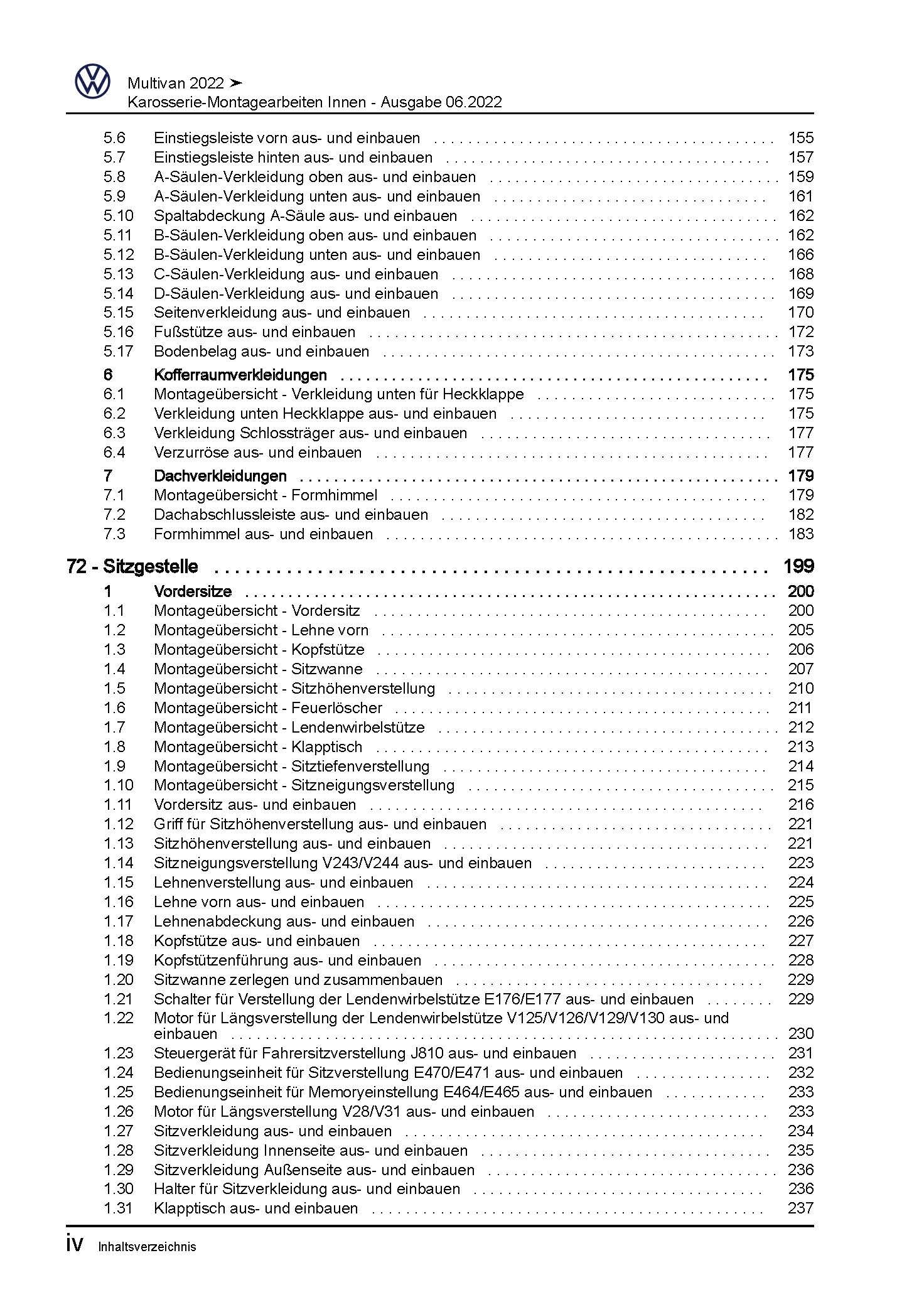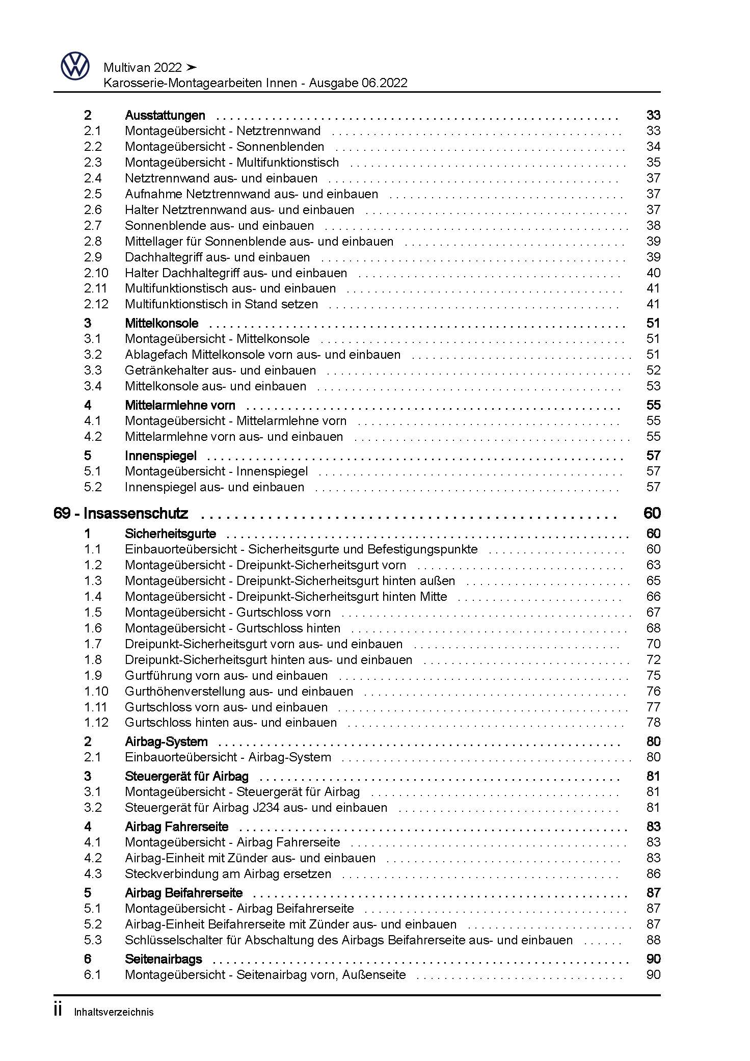 VW Multivan SL ST ab 2021 Karosserie Montagearbeiten Innen Reparaturanleitung