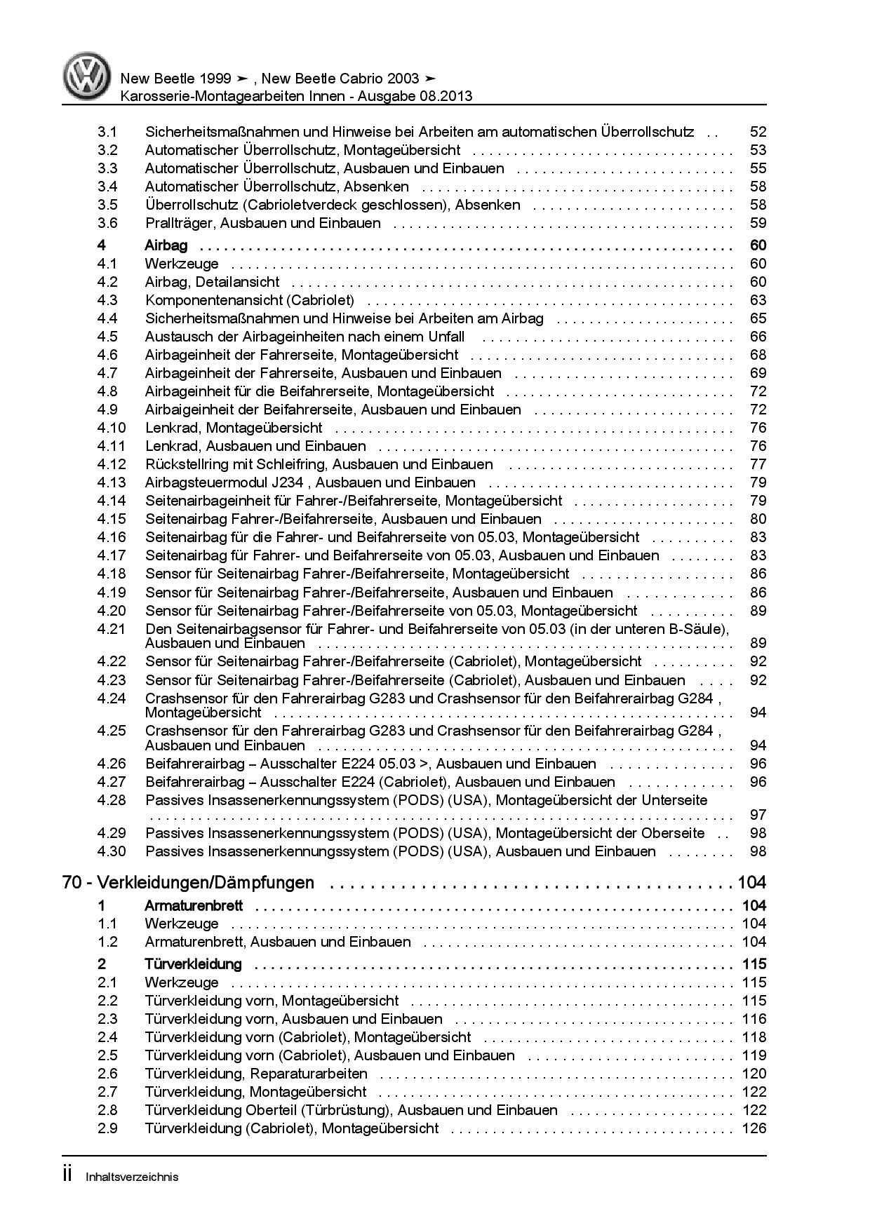 Der VW New Beetle Reparaturleitfaden ist ein lizenzierter Nachdruck der originalen Werkstattunterlagen. Diese Anleitung wird von Vertragswerkstätten verwendet und enthält alle technischen Informationen für fachgerechte Reparaturen.