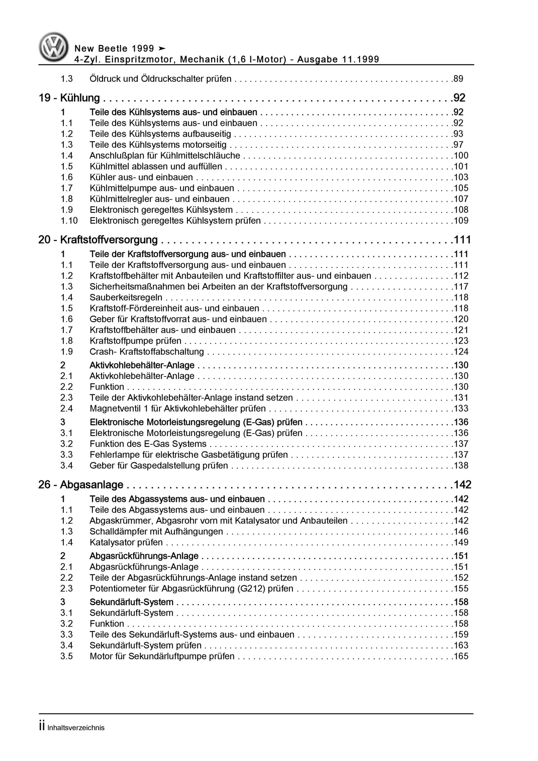Der VW New Beetle Reparaturleitfaden ist ein lizenzierter Nachdruck der originalen Werkstattunterlagen. Diese Anleitung wird von Vertragswerkstätten verwendet und enthält alle technischen Informationen für fachgerechte Reparaturen.