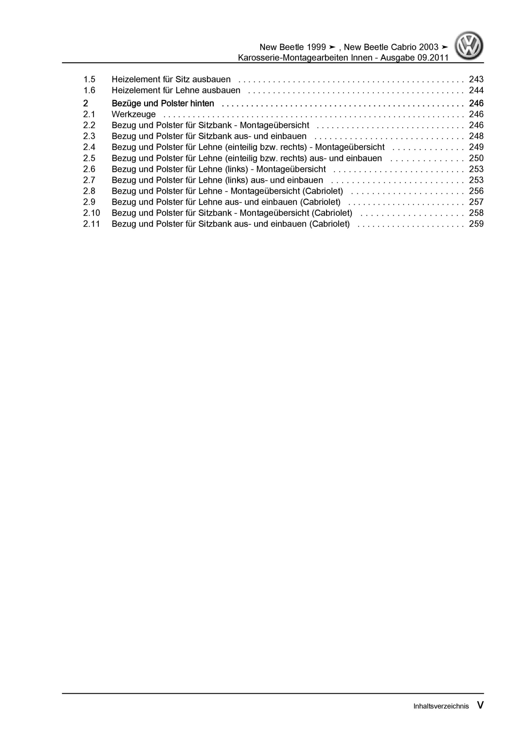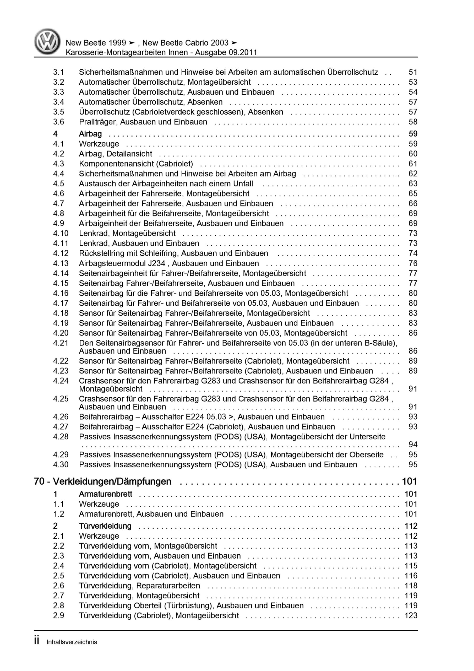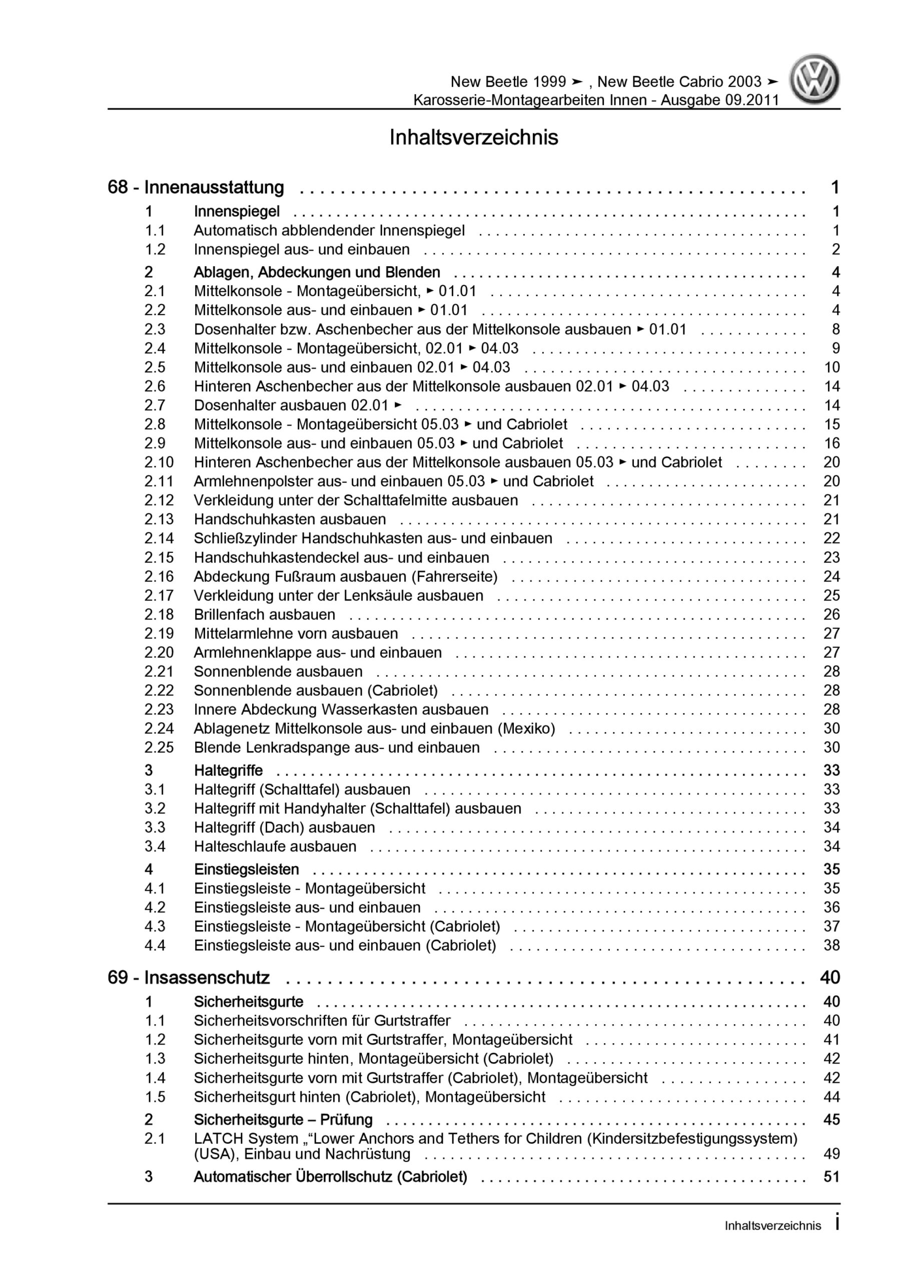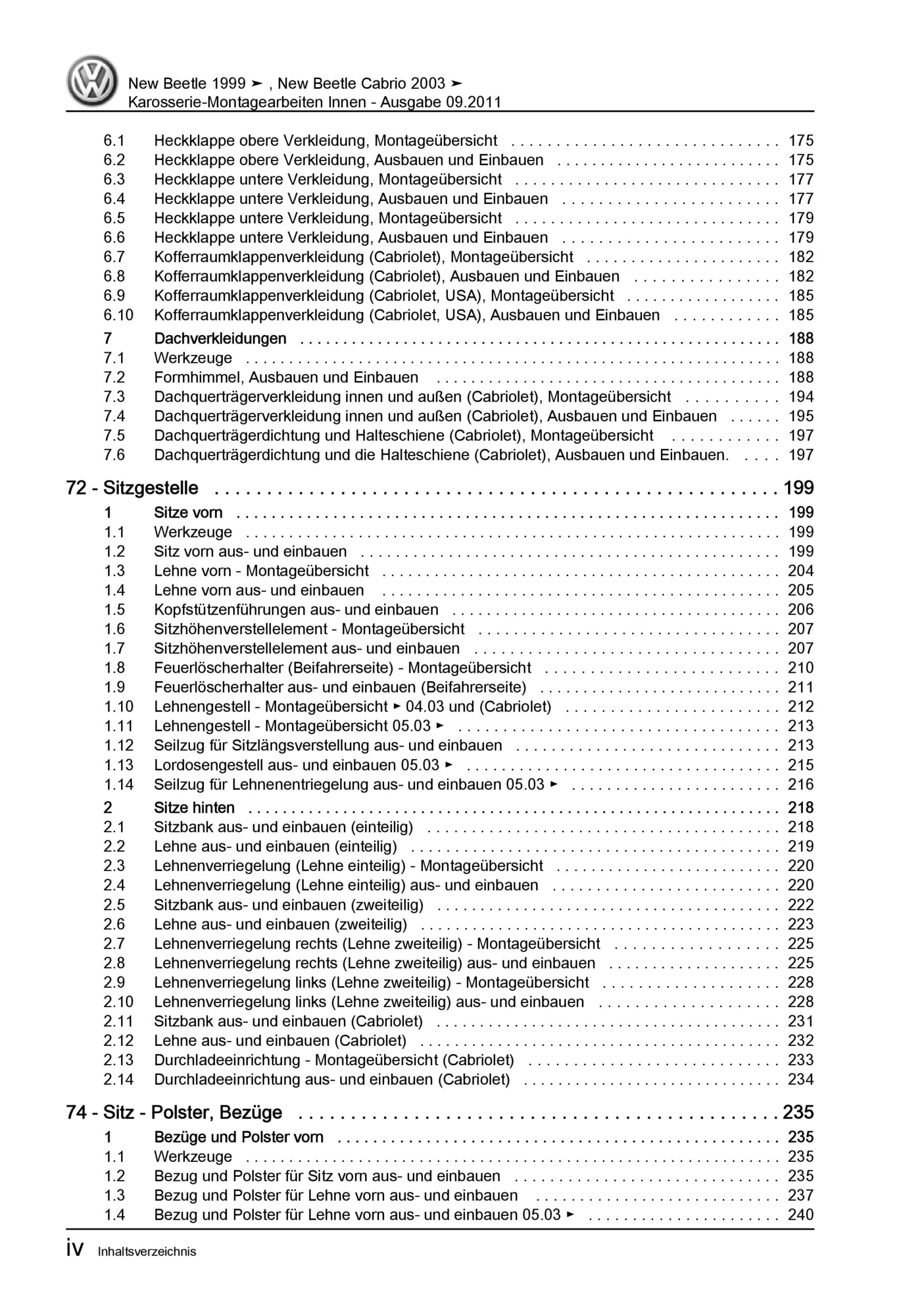 VW New Beetle Cabrio (03-10) Karosserie Montagearbeiten Innen Reparaturanleitung
