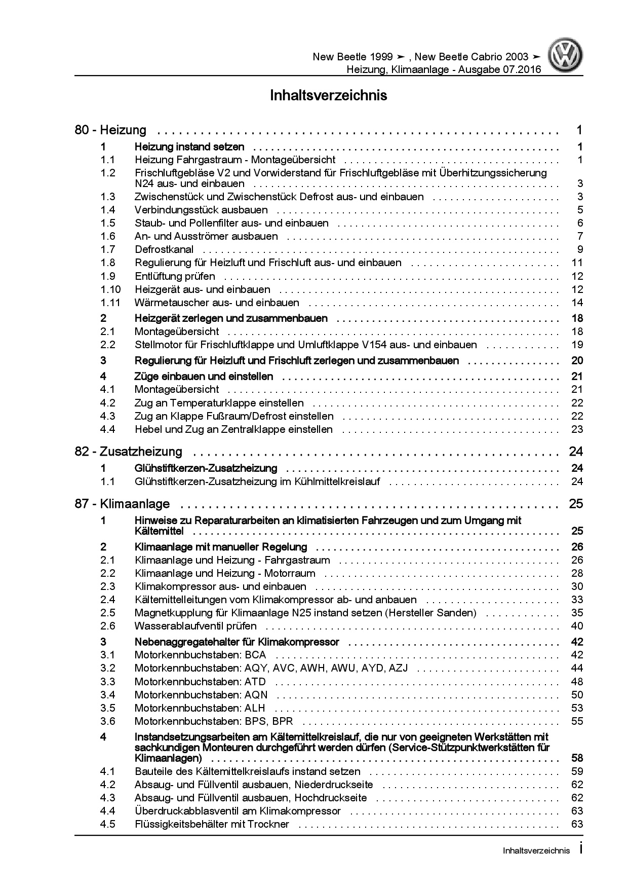 VW New Beetle Cabrio 1Y (03-10) Heizung Belüftung Klimaanlage Reparaturanleitung