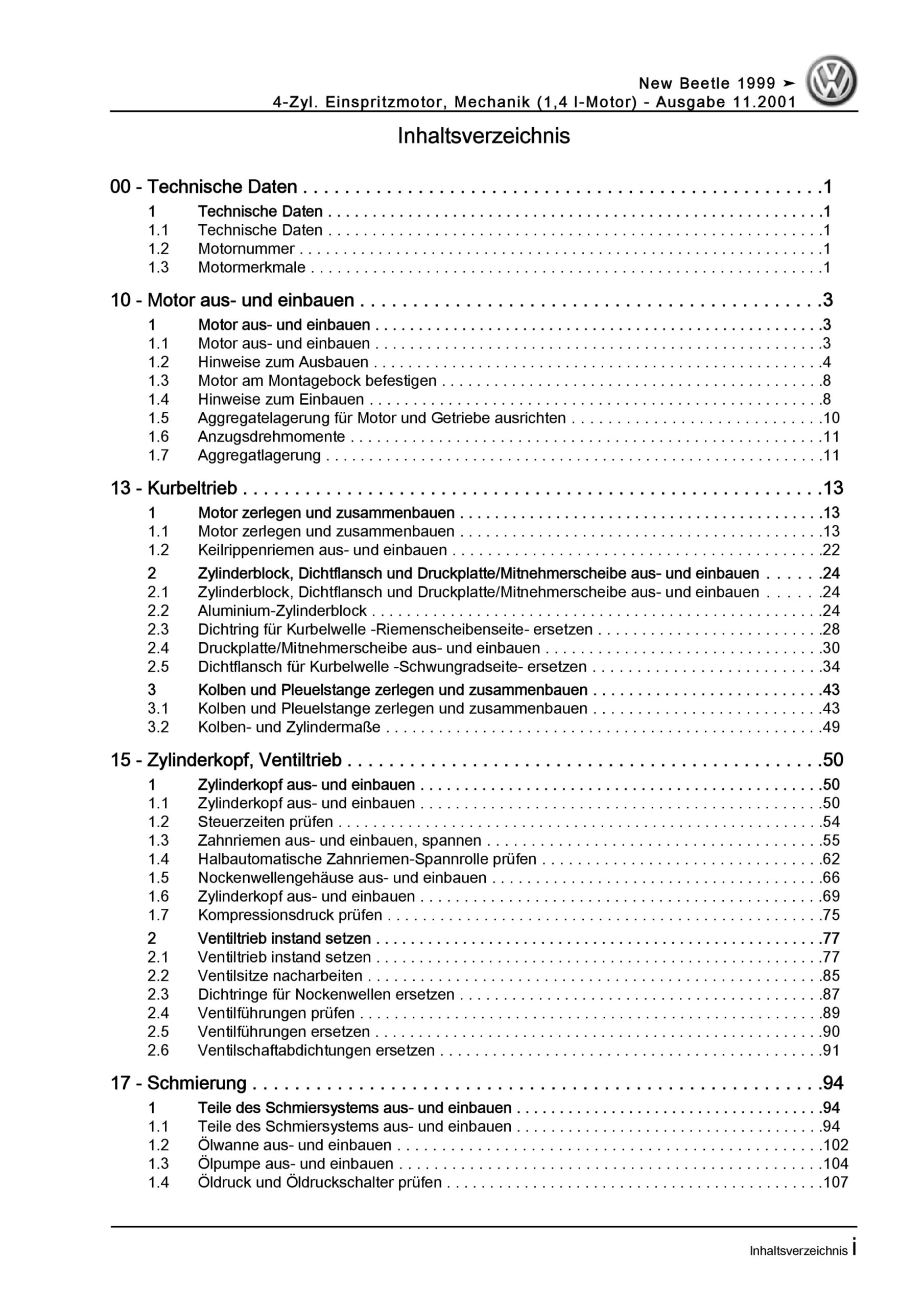 Der VW New Beetle Reparaturleitfaden ist ein lizenzierter Nachdruck der originalen Werkstattunterlagen. Diese Anleitung wird von Vertragswerkstätten verwendet und enthält alle technischen Informationen für fachgerechte Reparaturen.