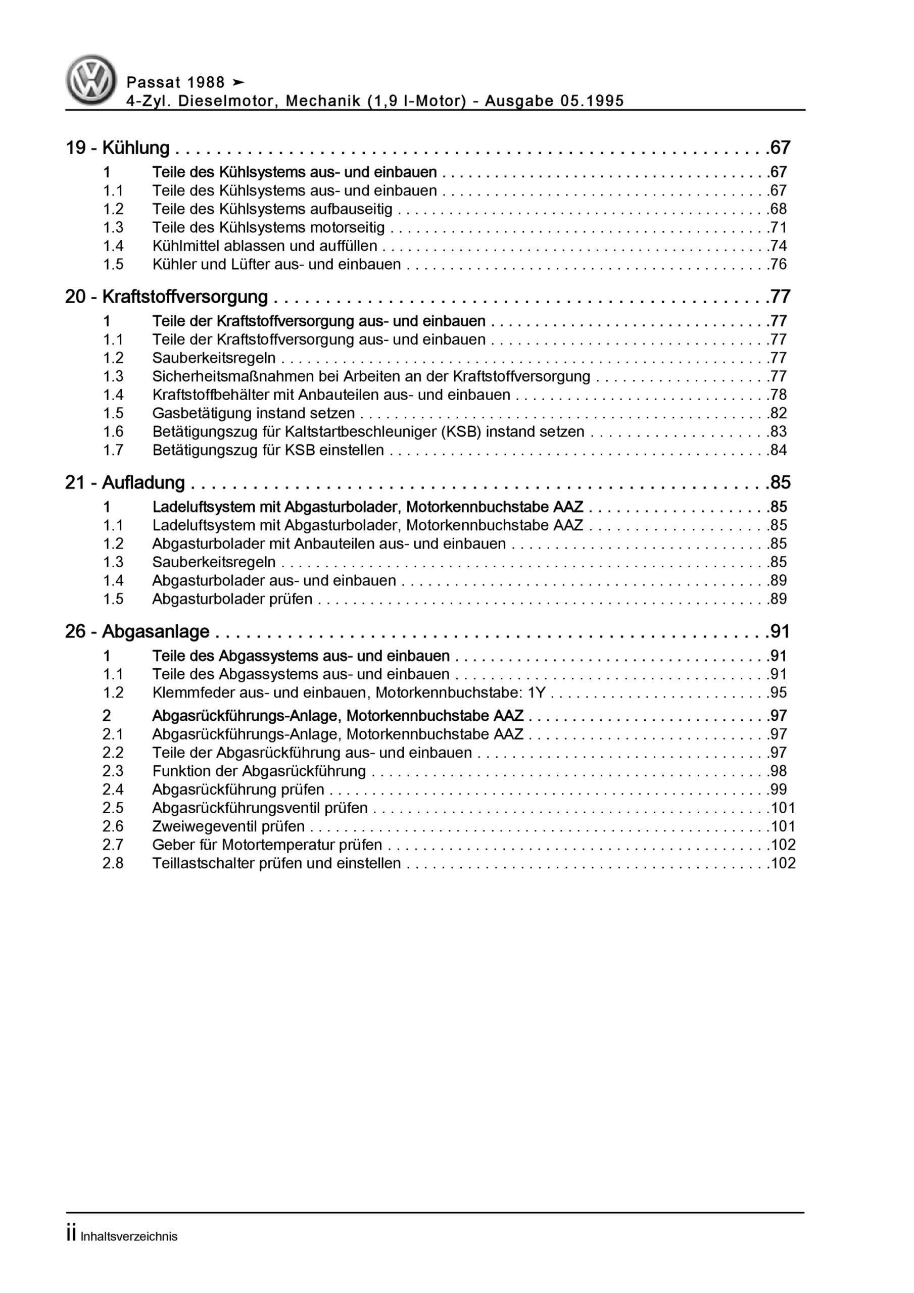VW Passat 3 35 1988-1993 4-Zyl. 1,9l Dieselmotor TDI 64-75 PS Reparaturanleitung