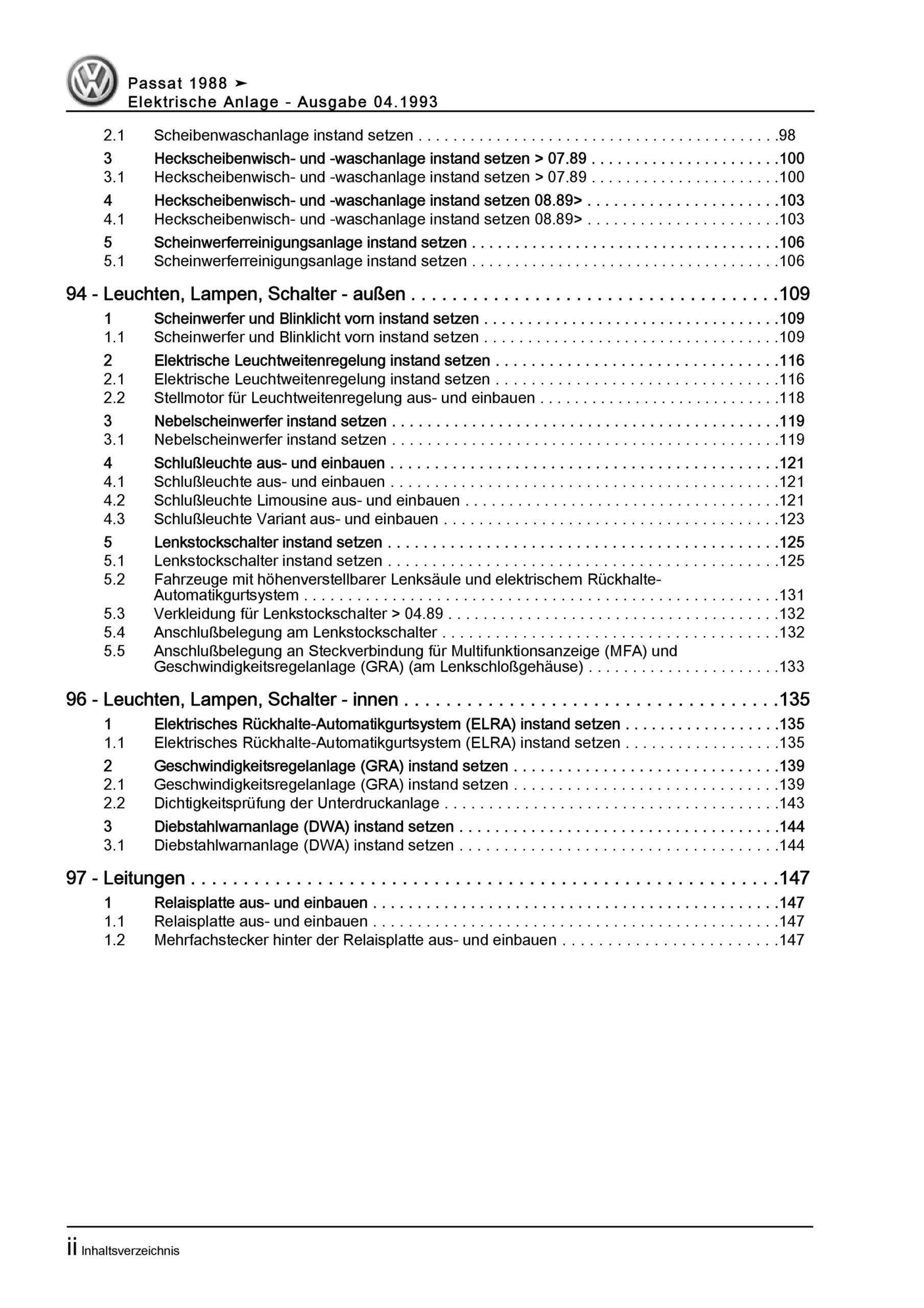 VW Passat 3 35 1988-1993 Elektrische Anlage Elektrik Systeme Reparaturanleitung