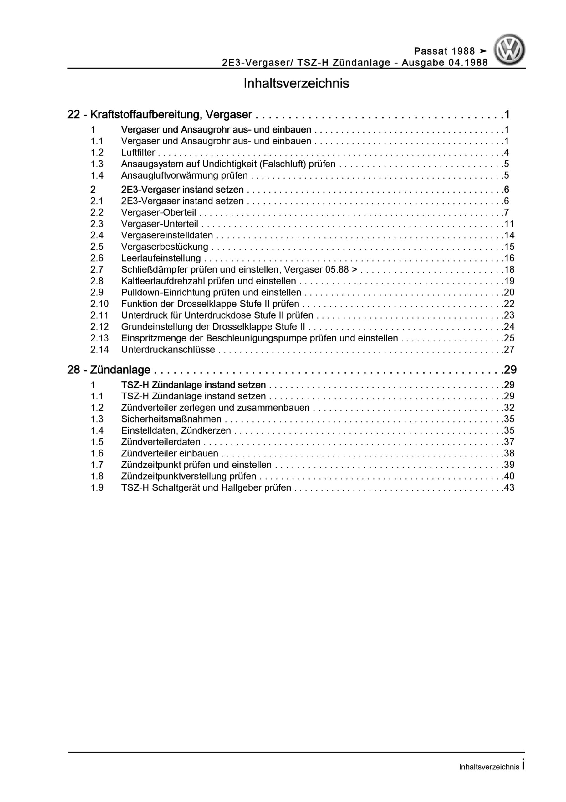 VW Passat 3 35 (88-93) 2E3-Vergaser TSZ-H Zündanlage 1,6l Reparaturanleitung