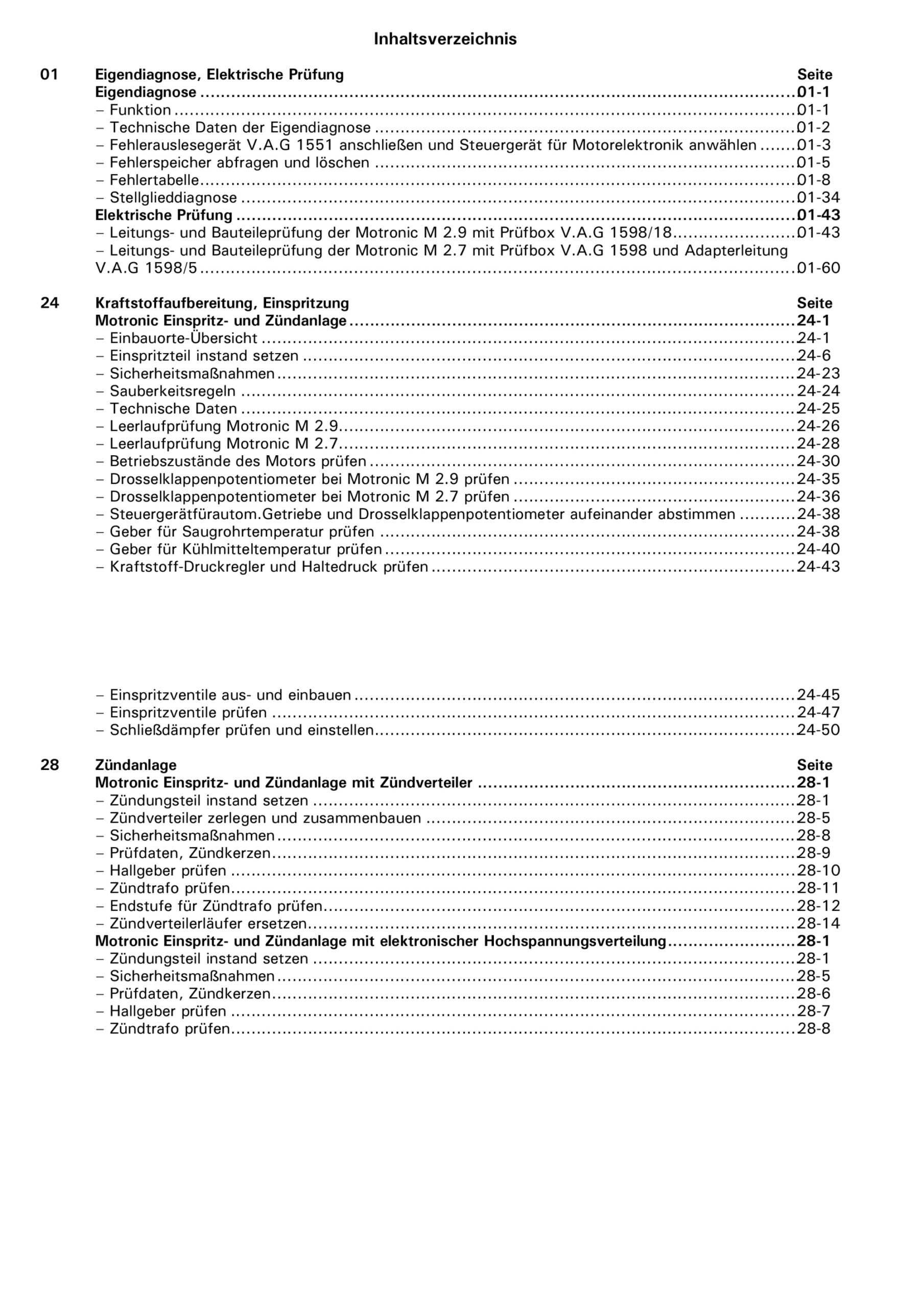 VW Passat 3 Typ 35 (88-93) Motronic Einspritz Zündanlage 2,8l Reparaturanleitung