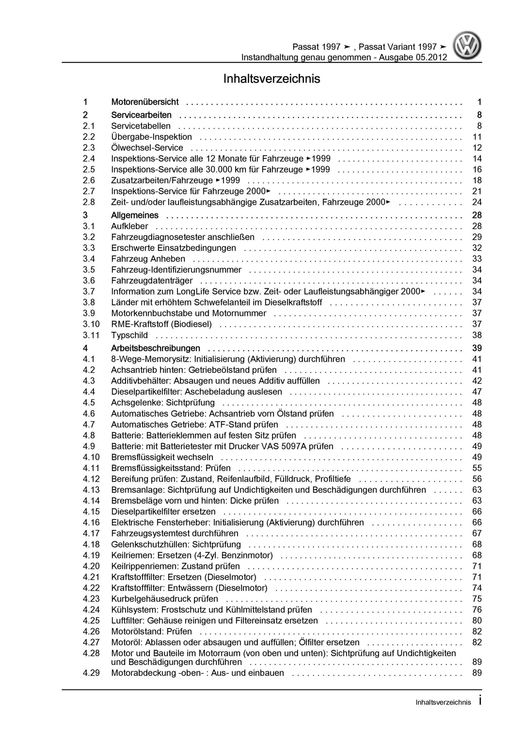 Offizieller VW Passat 5 inklusive Variant Reparaturleitfaden