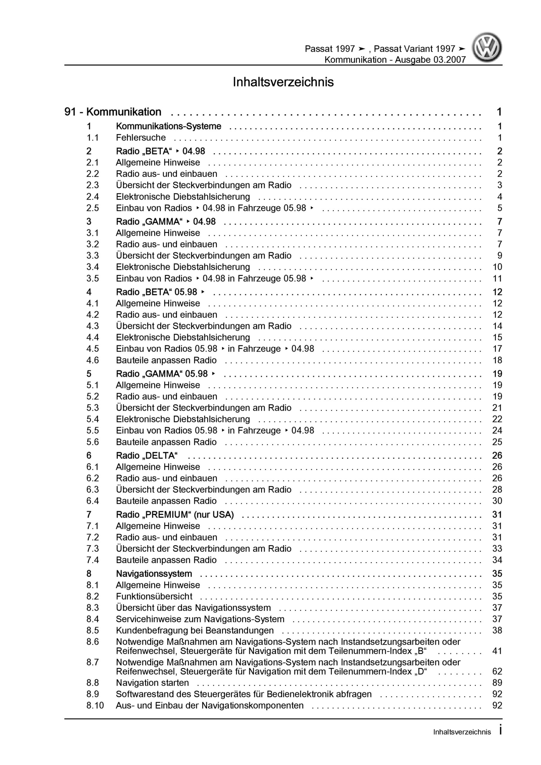 VW Passat 5 Typ 3B 1996-2005 Radio Navigation Kommunikation Reparaturanleitung