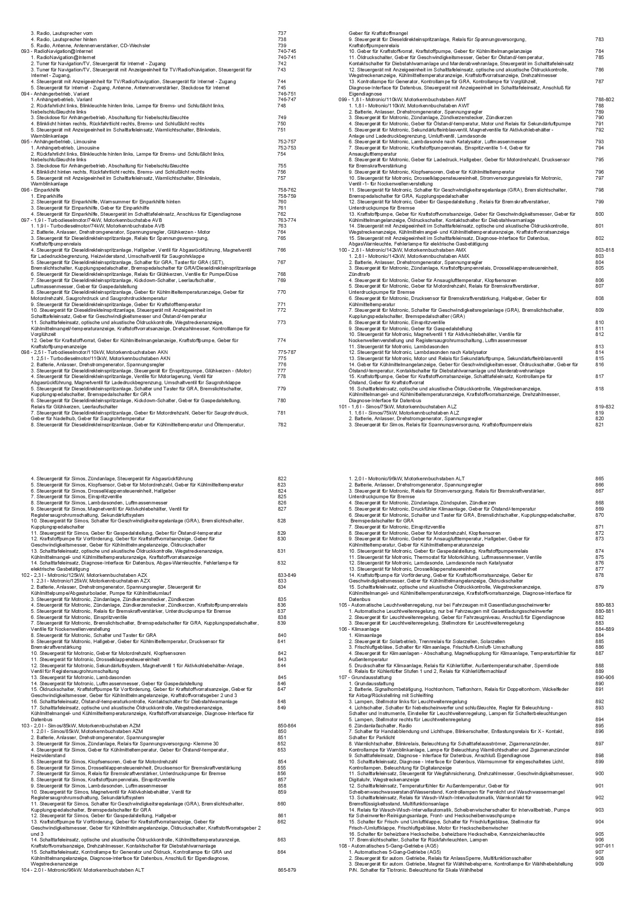 • Modell: Passat 5 inklusive Variant